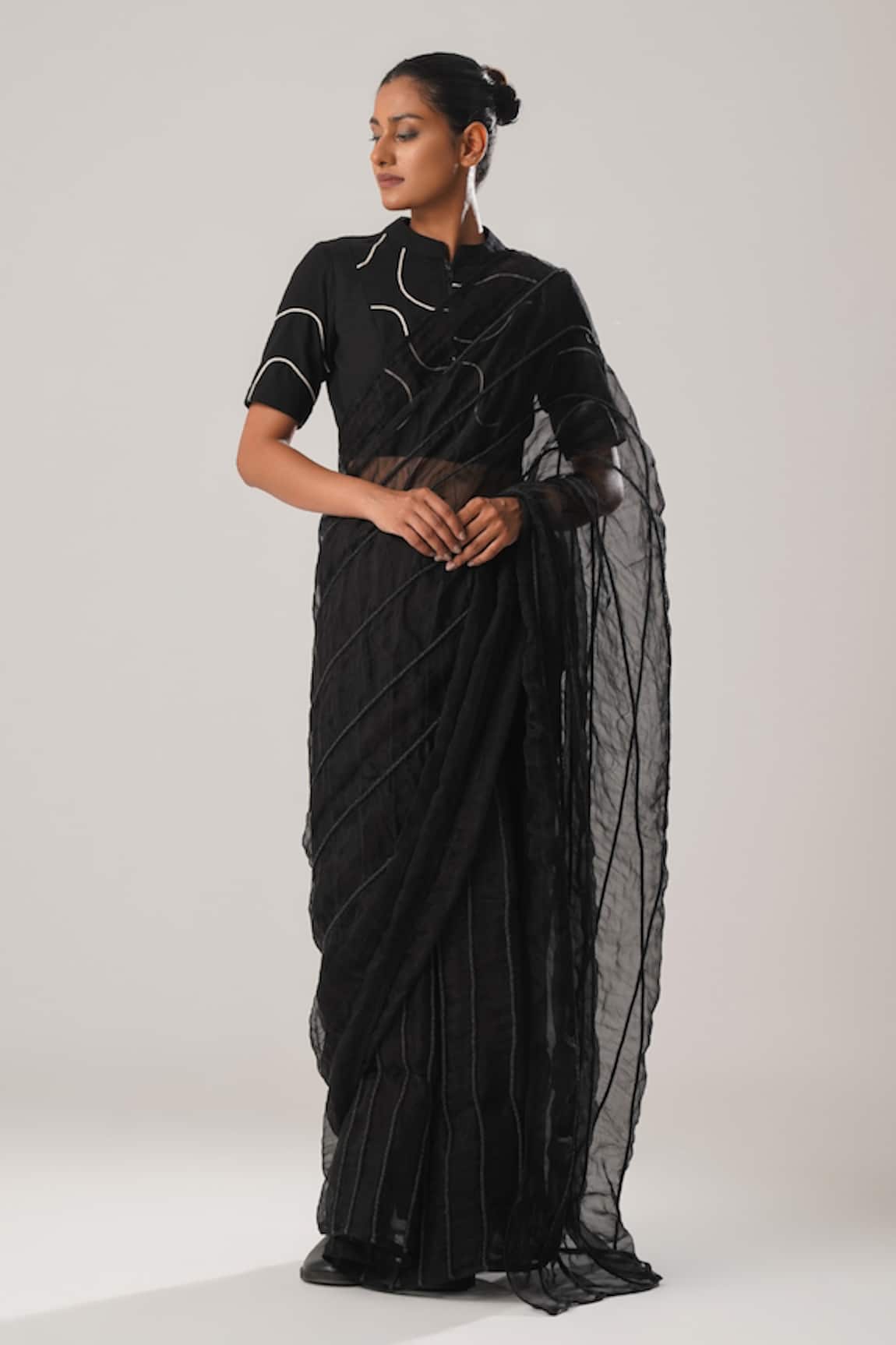 Kantha Stitch Pleated Panelled Saree Blouse