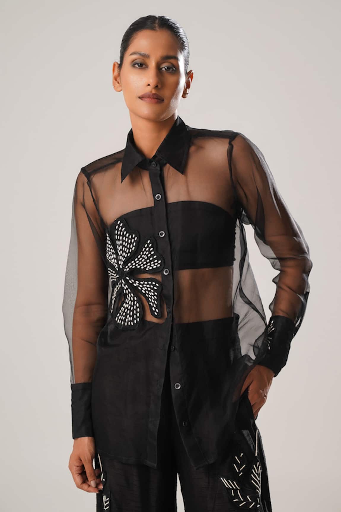Rafflesia Dori Patch Embroidered Sheer Shirt