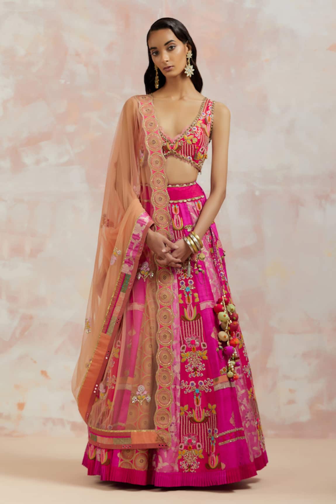 Silk Patchwork Zardozi Embroidered Lehenga With Corset