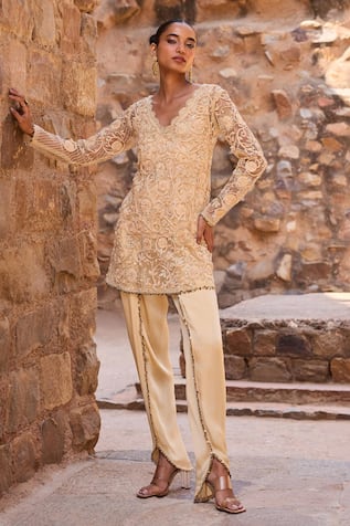Audrey Flora Embroidered Pre-Draped Ruffle Saree With Blouse
