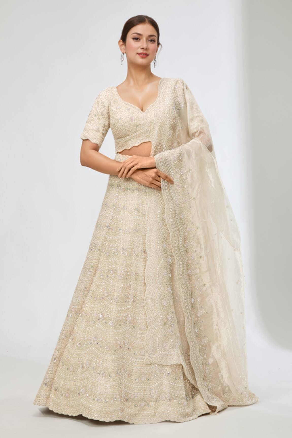 Cutdana Embroidered Peacock Blue Lehenga Set