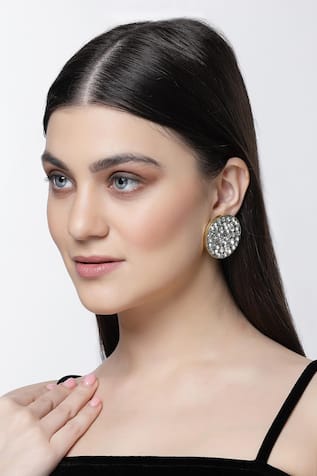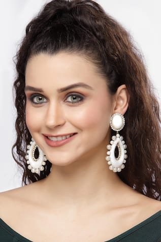 Amala Pearl & Crystal Embellished Half Hoop Earrings