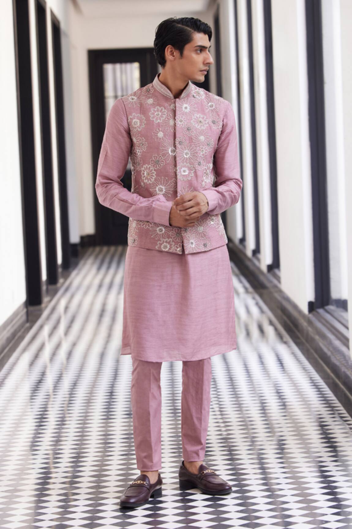 Salmon Pink Bundi & Kurta Set