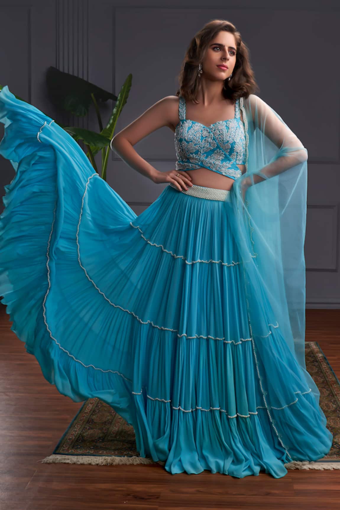 Liros Gathered Tiered Embroidered Yoke Anarkali With Dupatta
