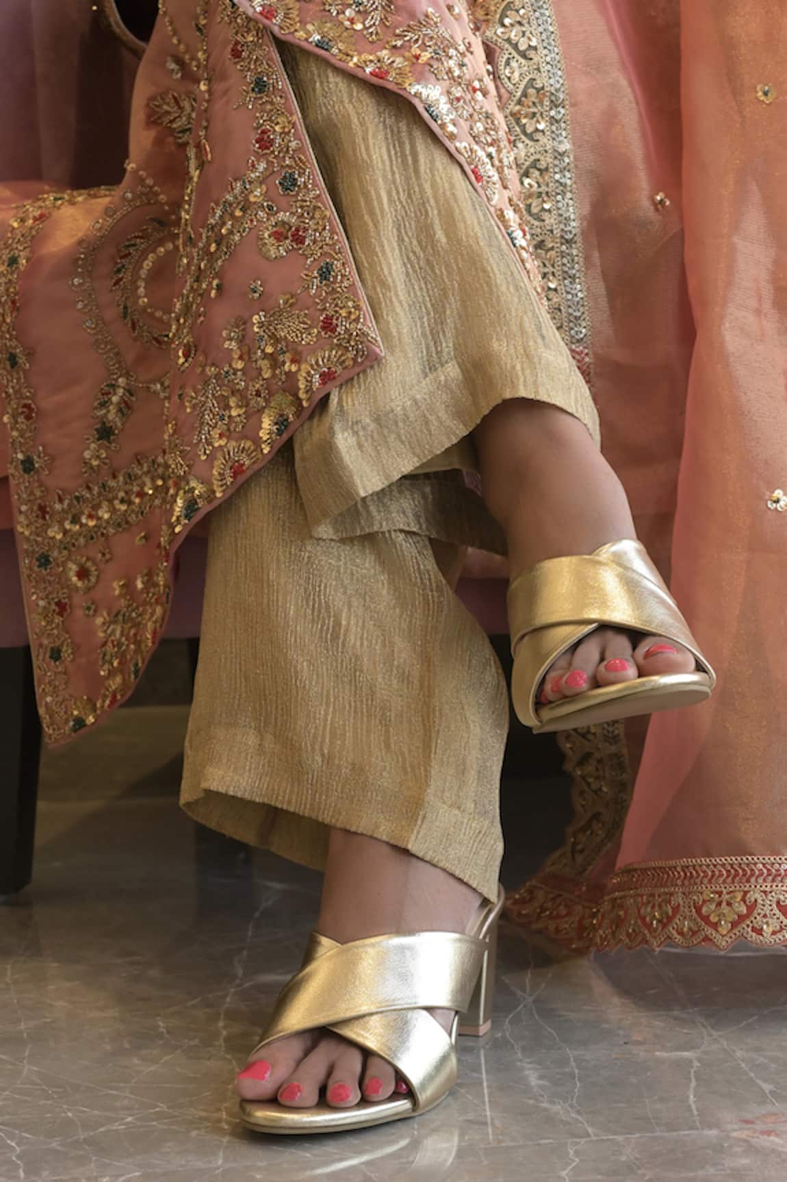 Gold Sequin Zardozi Embroidered Heels