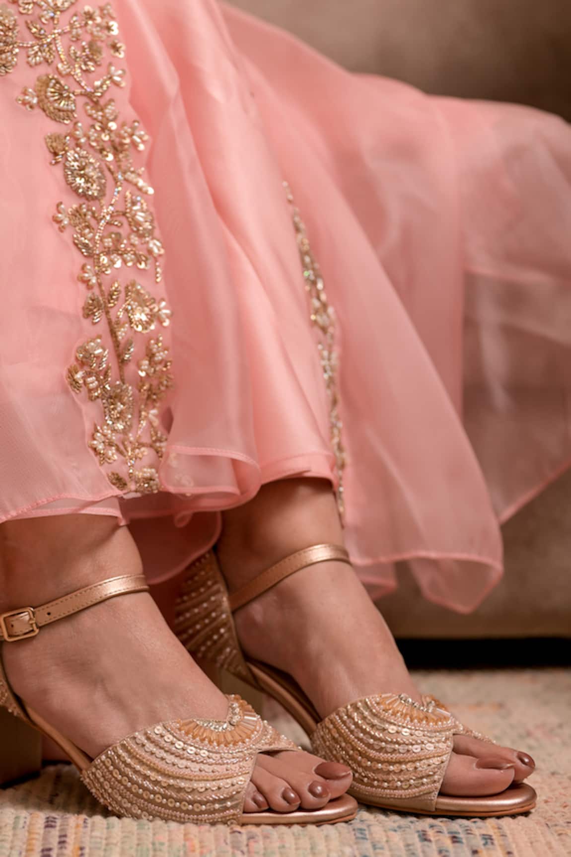 Rose Gold Sequin Embroidered Heels