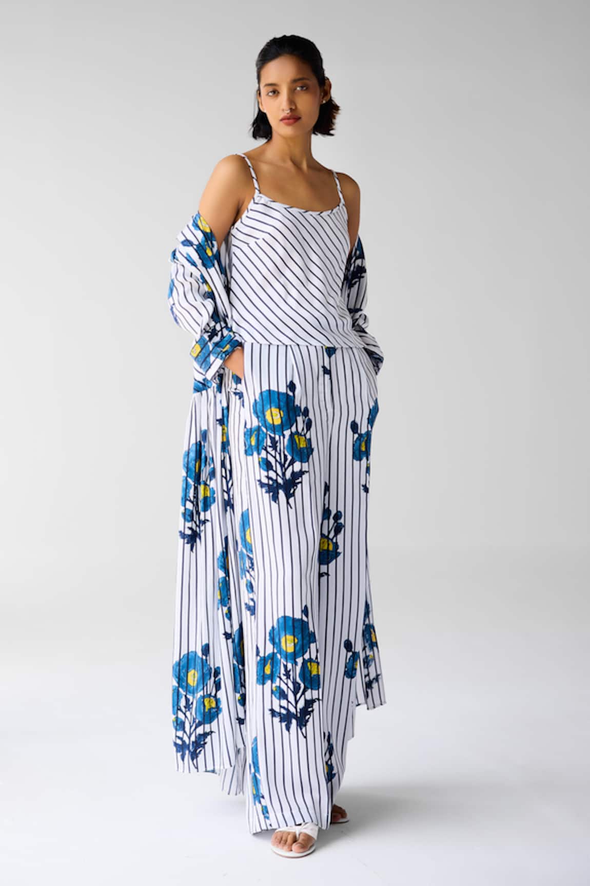 Bouquet Hand Block Print Kimono Top Trouser Set