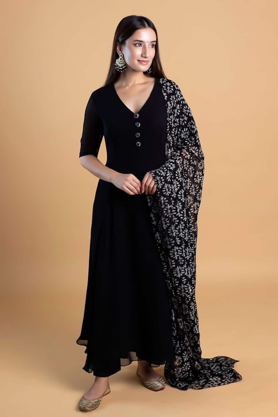 Pre-Draped Ruffle Saree With Embroidered Blouse