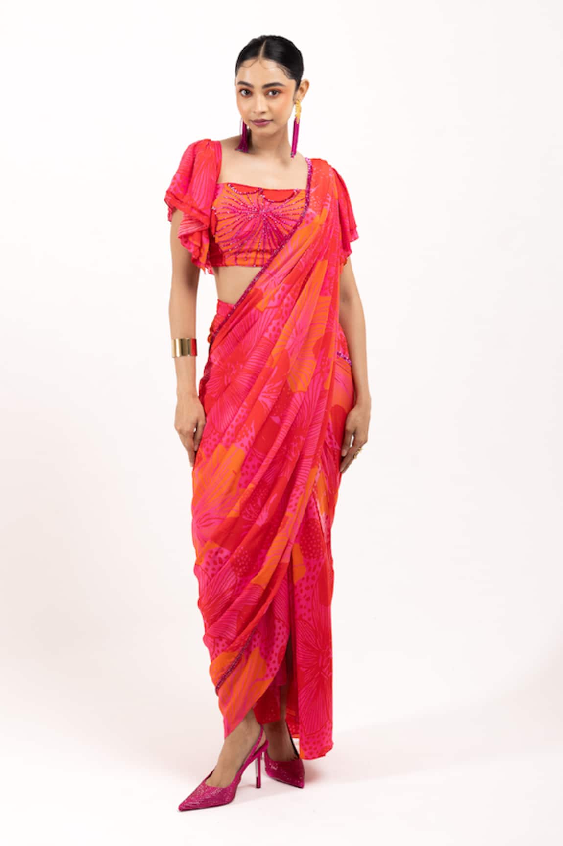 Pre-Draped Saree With Padded Blouse