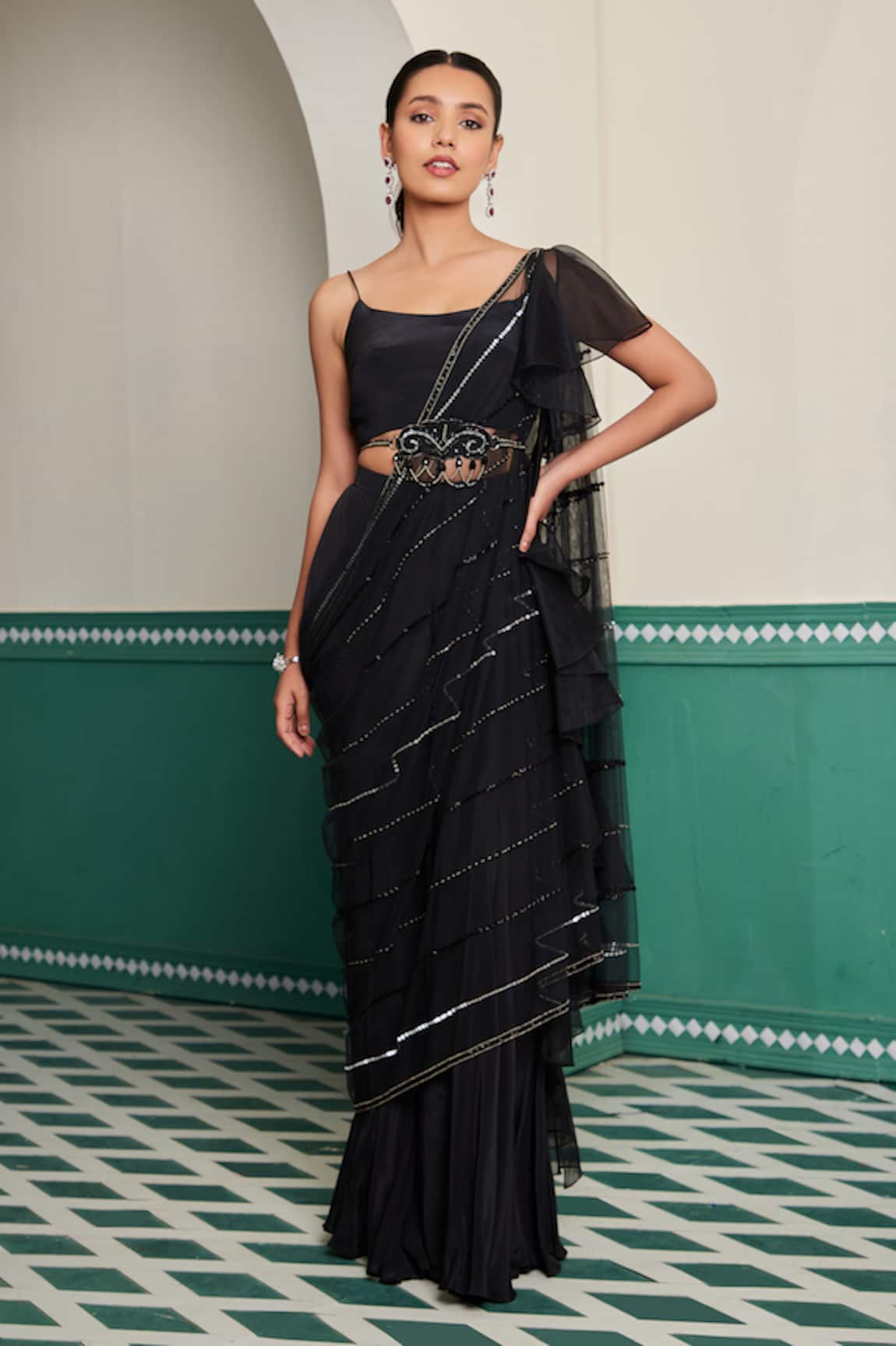 Nosheen Pre-Draped Saree With Ruffle Blouse