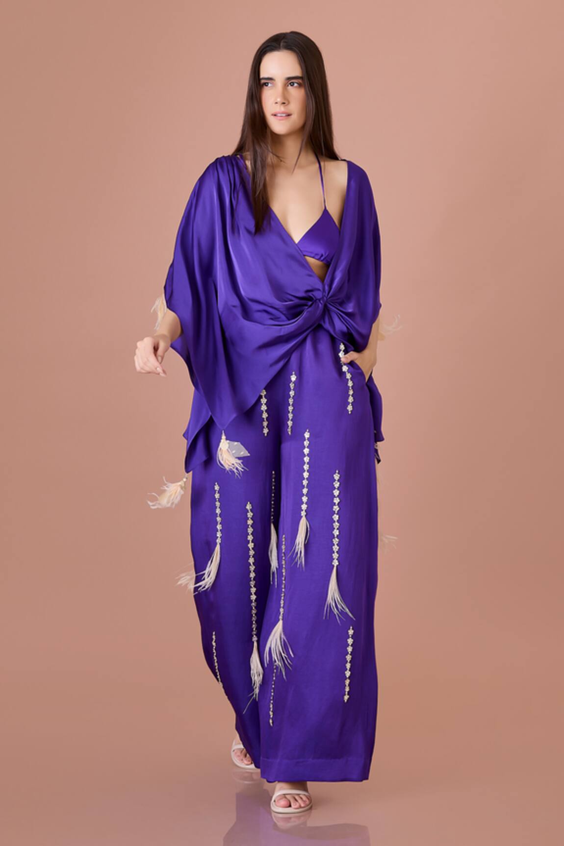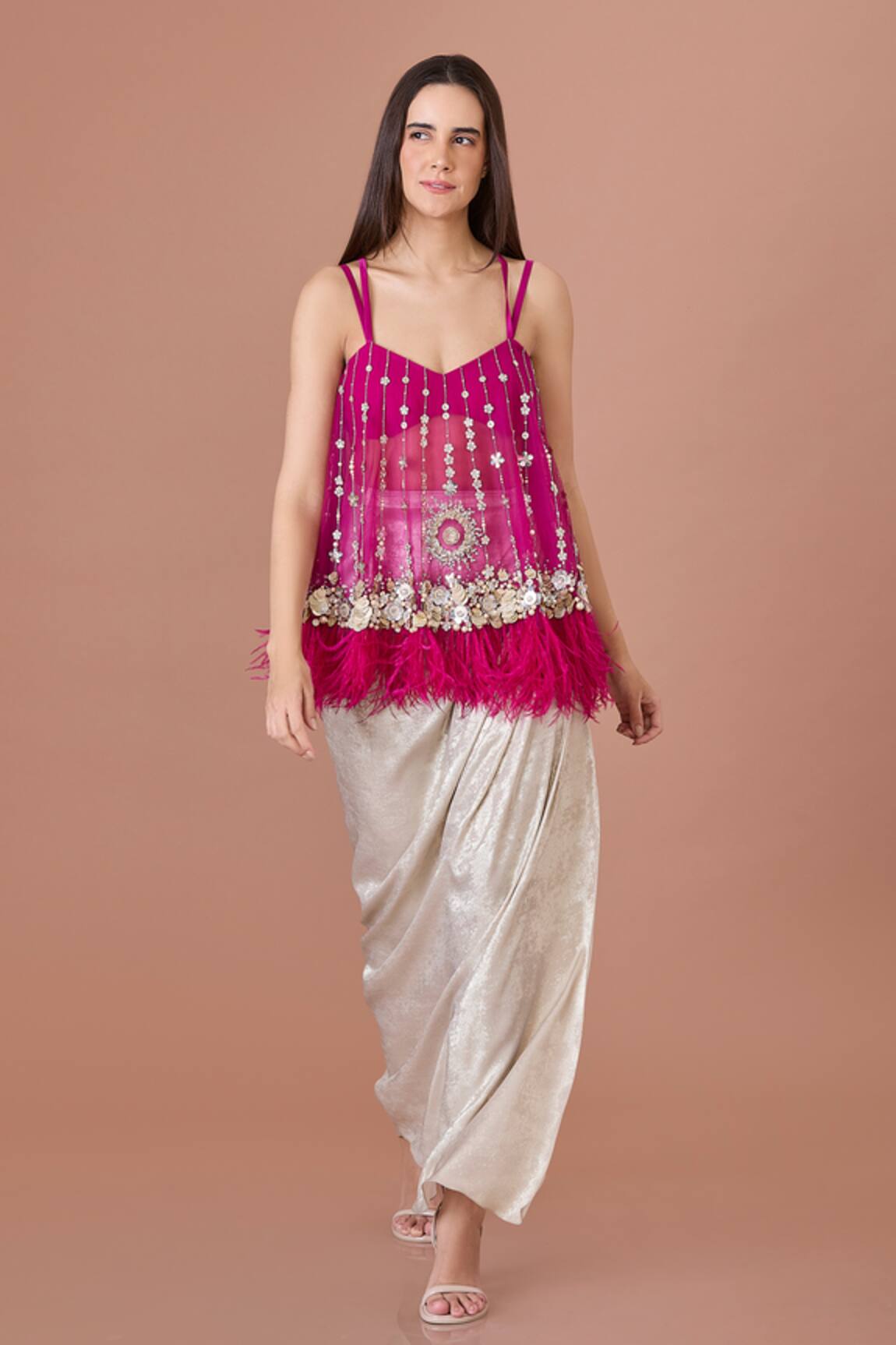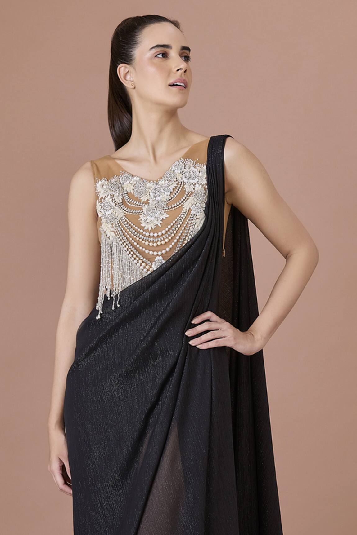 Asymmetric Embroidered Blouse With Pre-Draped Saree