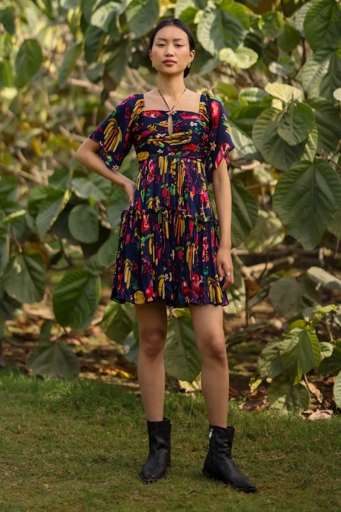 Jungle Print Ruffle Pre-Draped Saree With Blouse