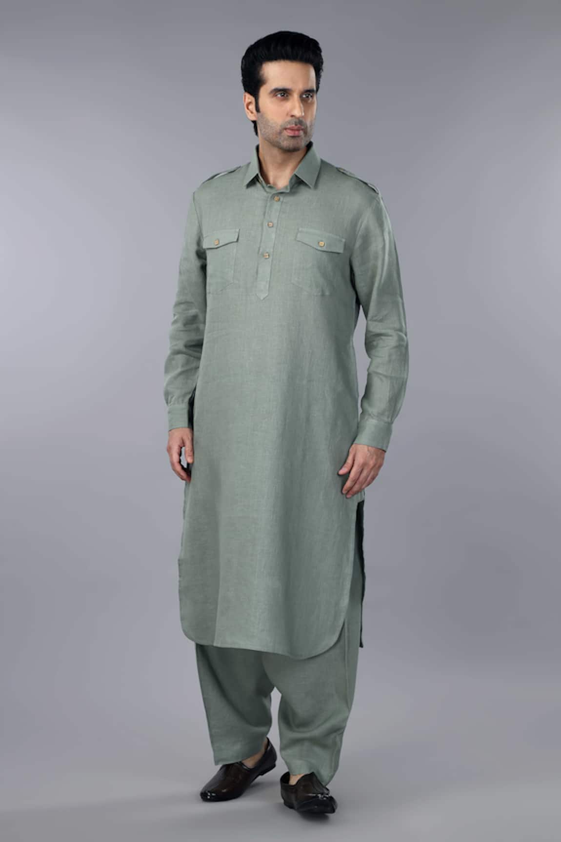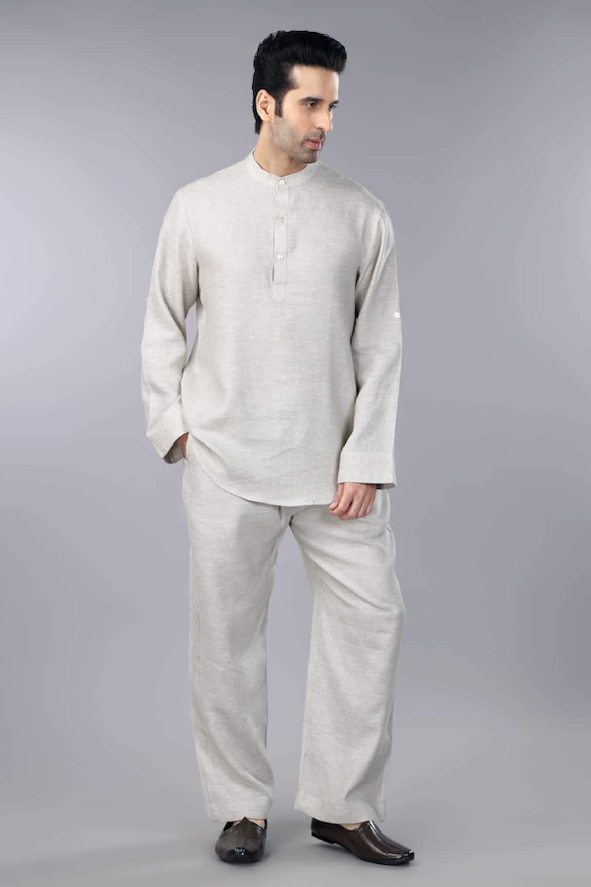 Natural Linen Shirt Style Kurta & Palazzo Set