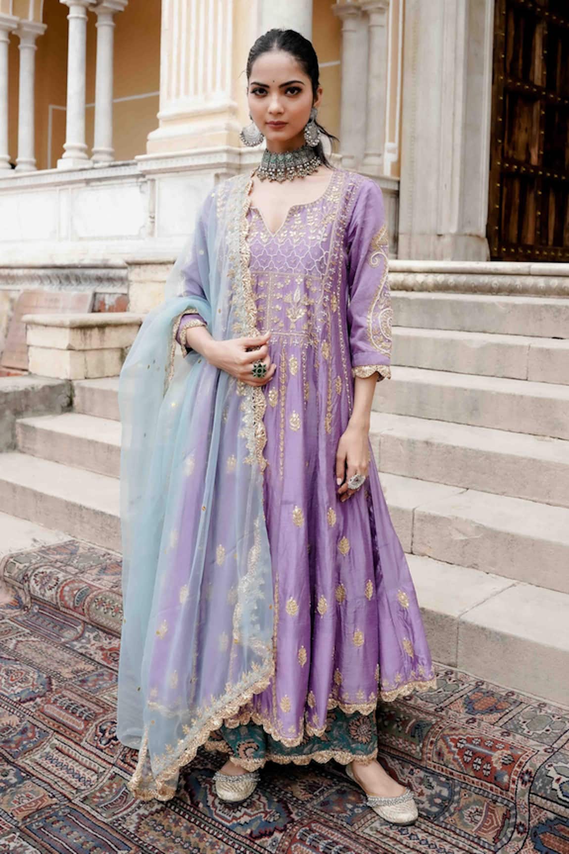 Wafa Floral Mughal Threadwork Anarkali Pant Set