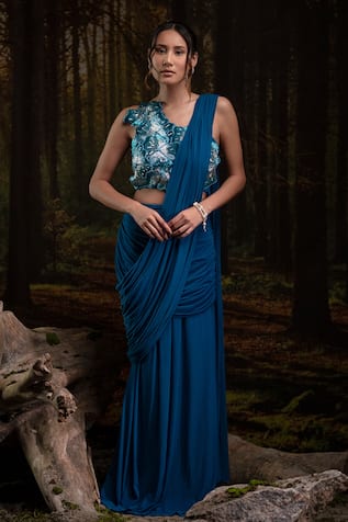 Pleated Pre-Draped Saree With 3D Embroidered Blouse
