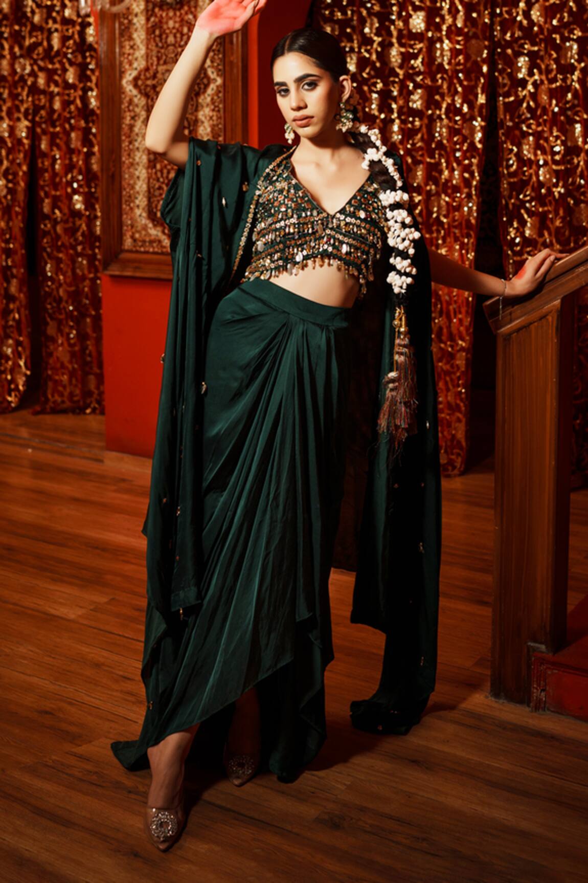 Indrani Hand Embroidered Shirt With Draped Skirt