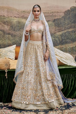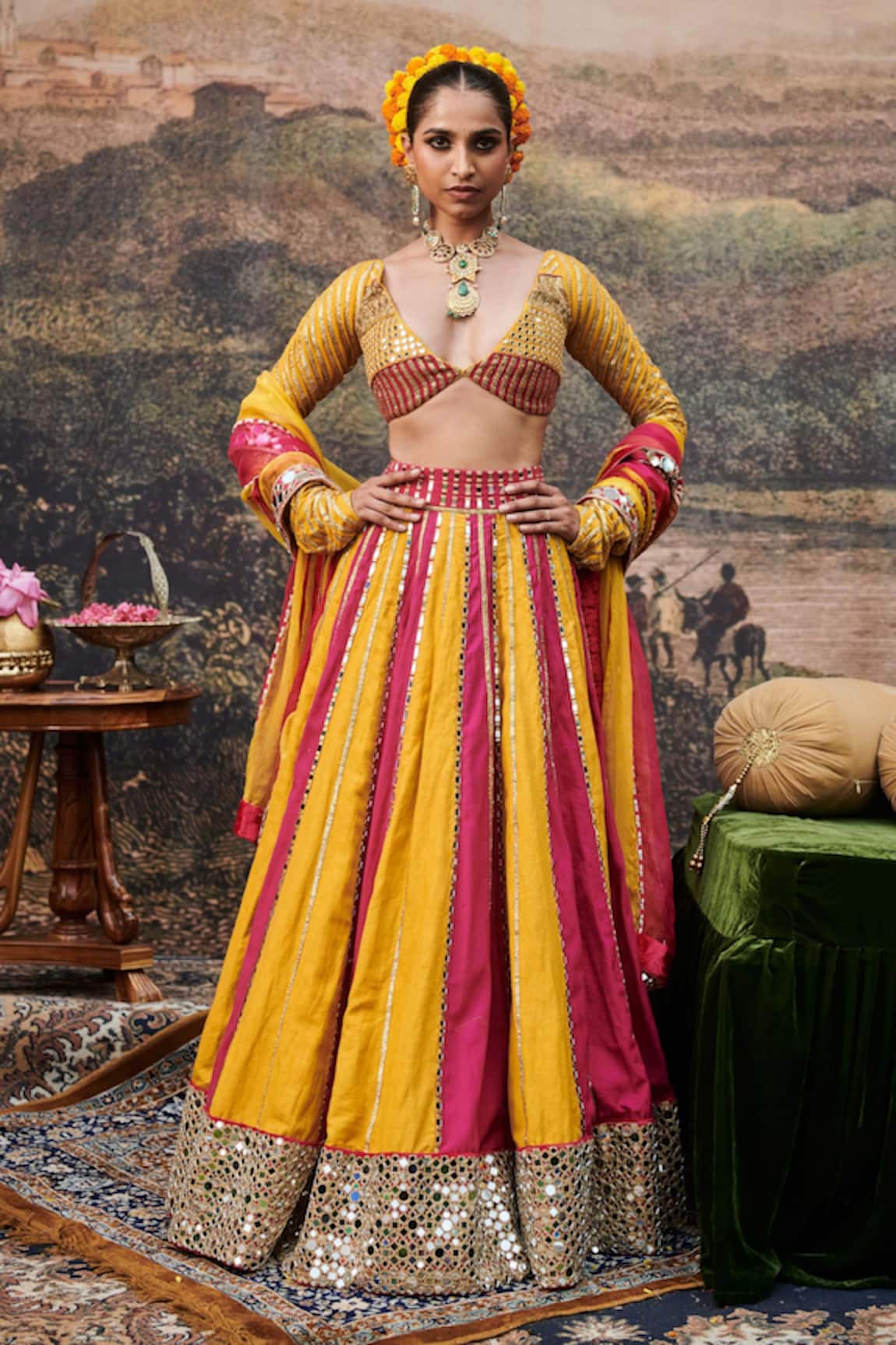 Textured Stripe Lehenga With Mirrorwork Blouse