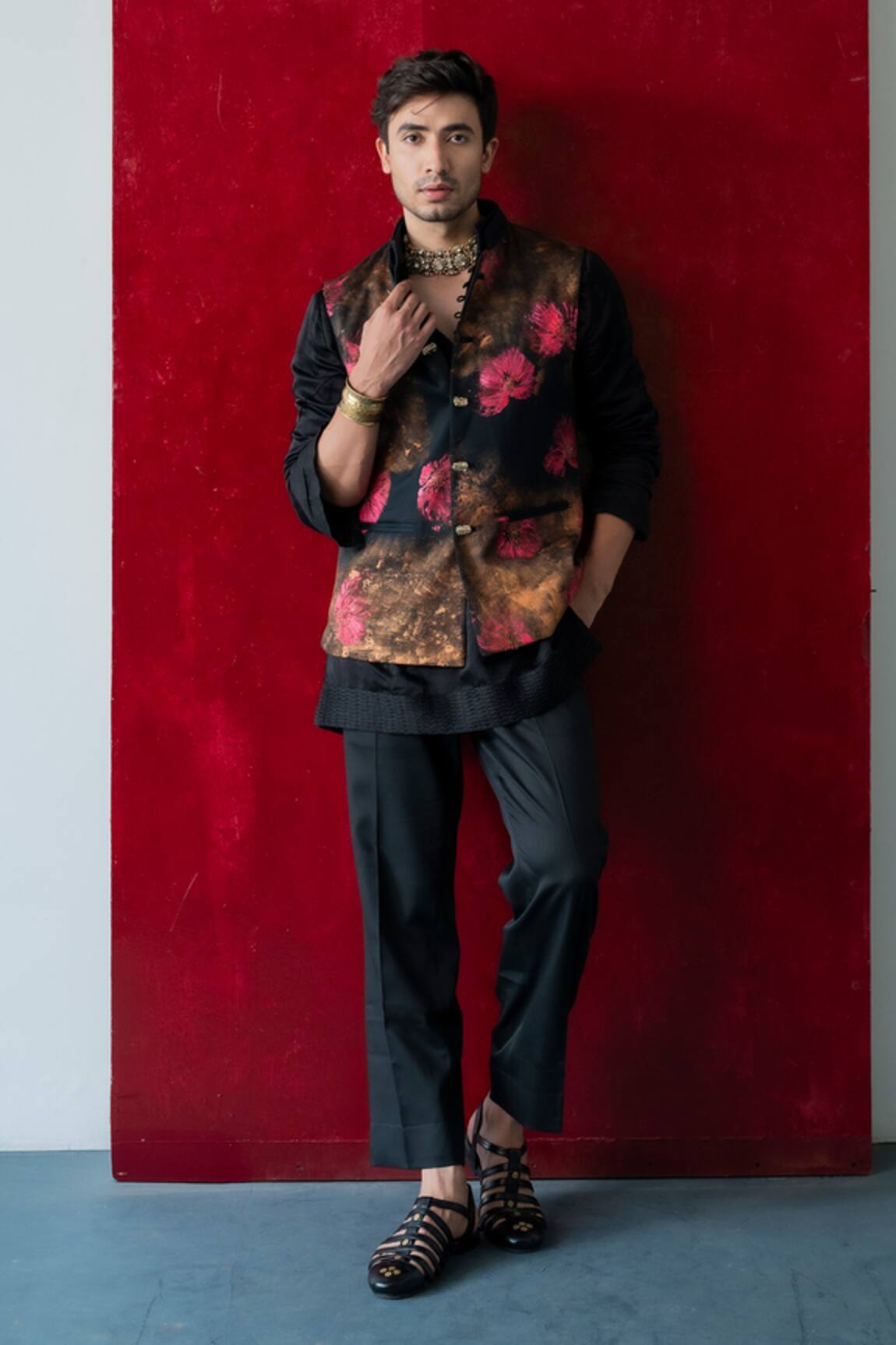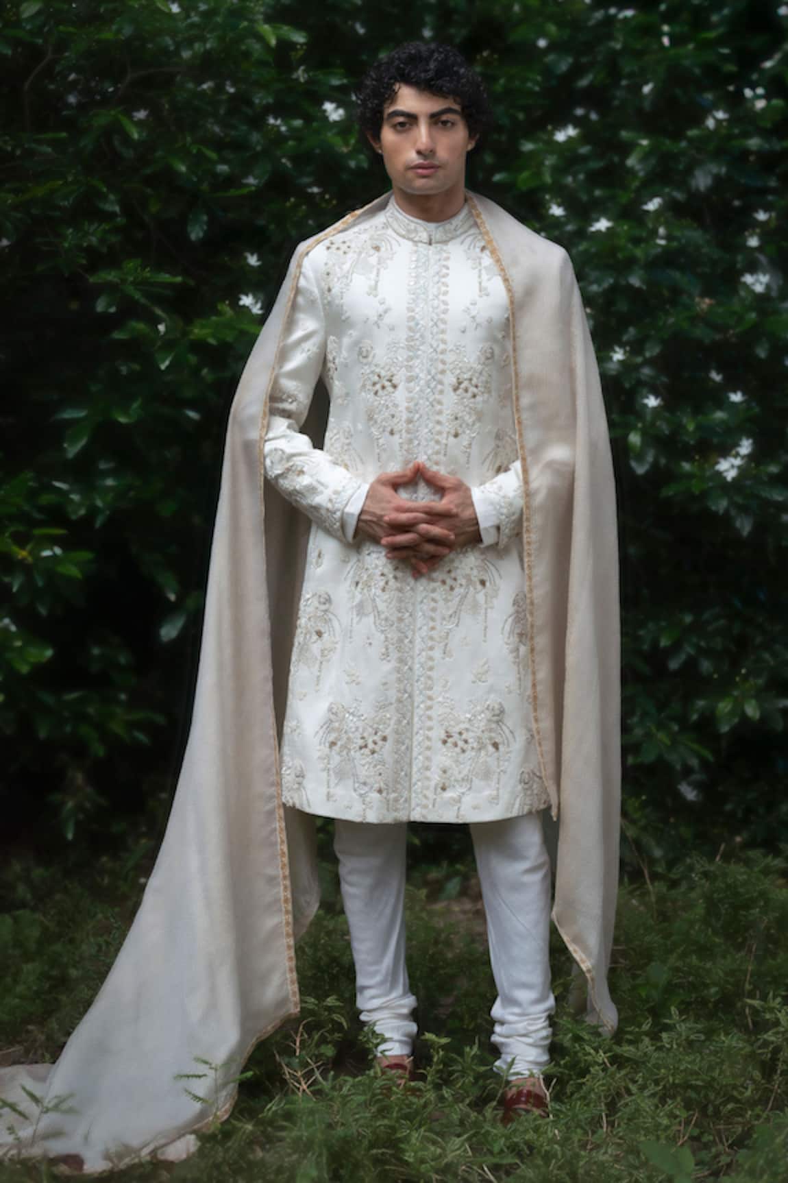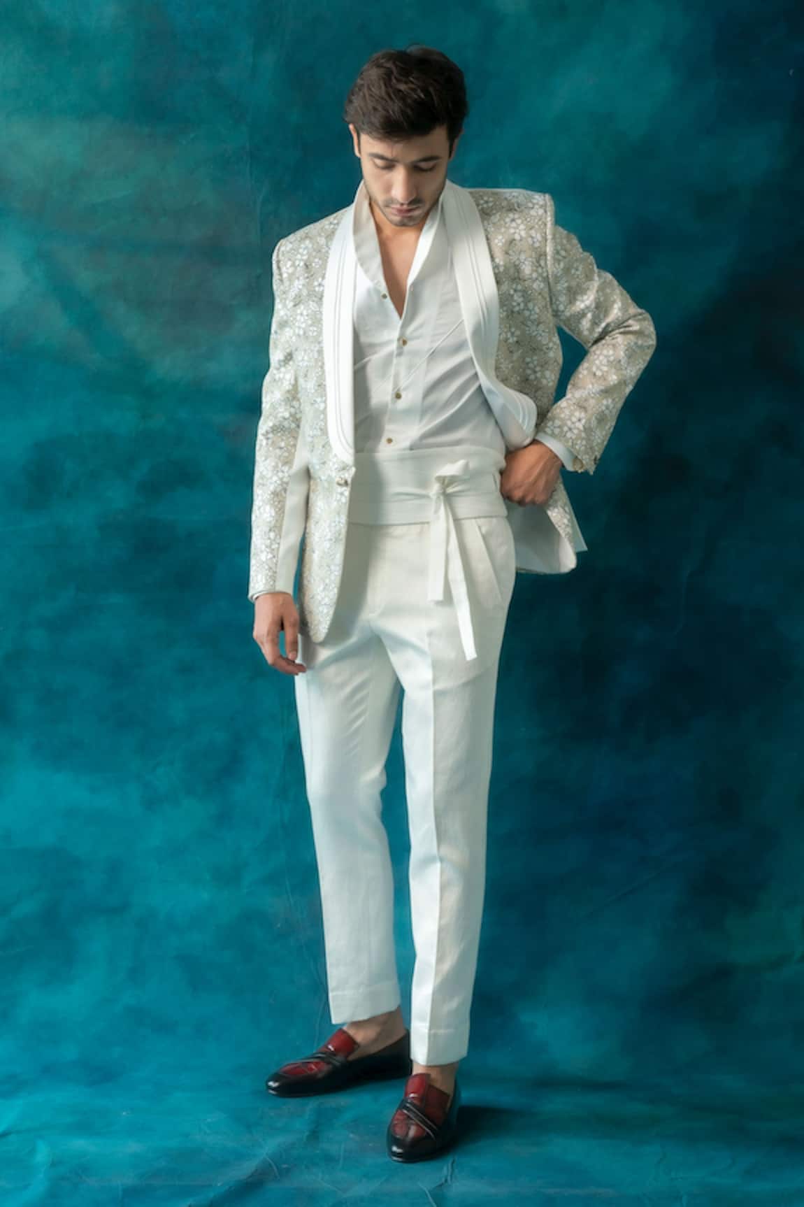 Dolce Linen Silk Floral Embroidered Jacket Kurta Set