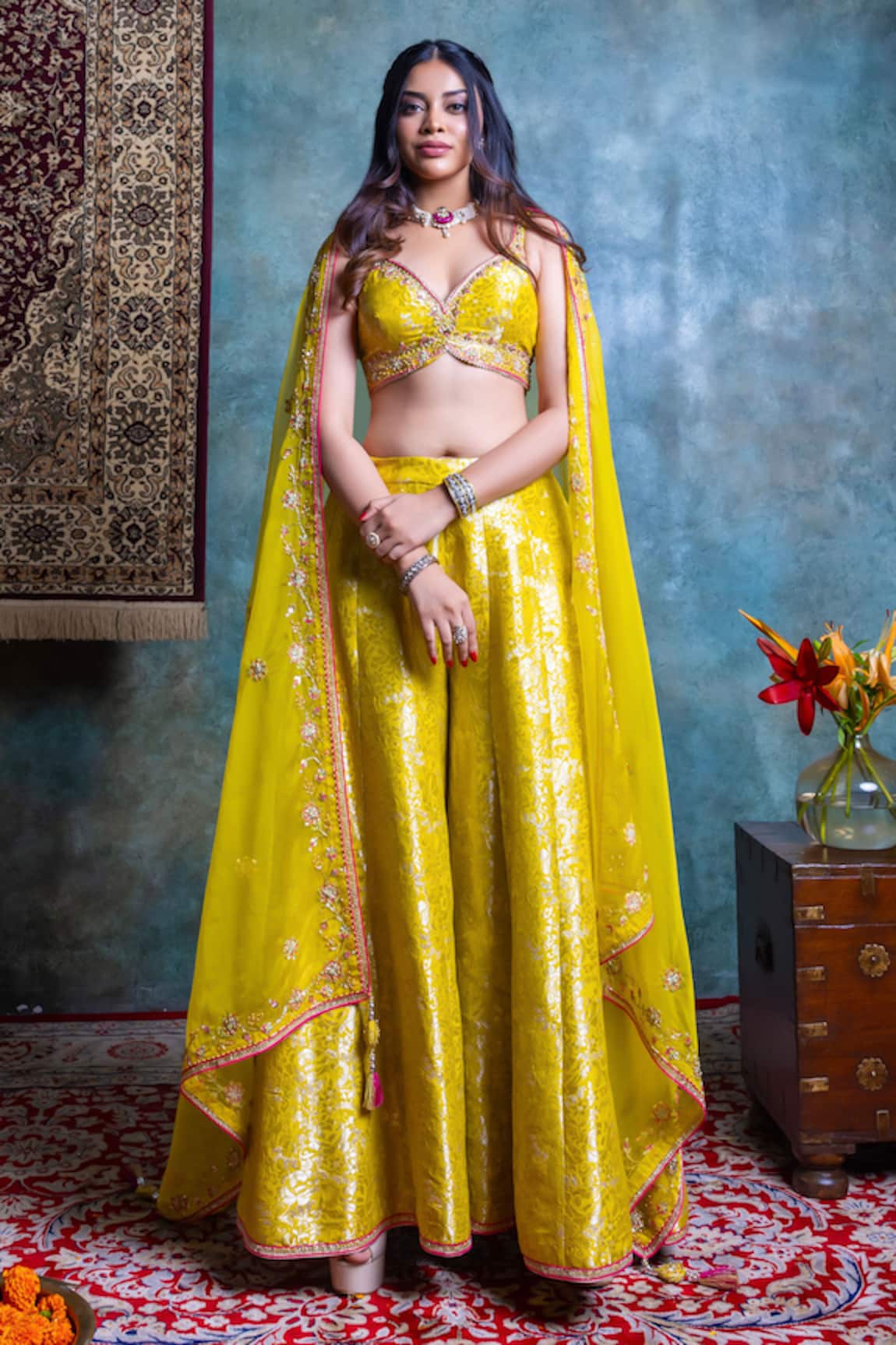 Mirror Hand Embroidered Palazzo Set With Jacket