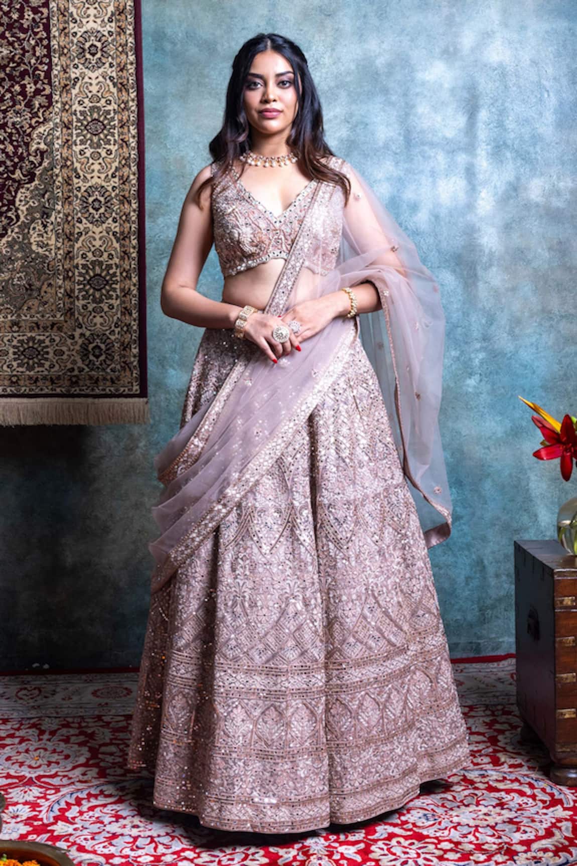 Floral Mirrorwork Embroidered Bridal Lehenga Set