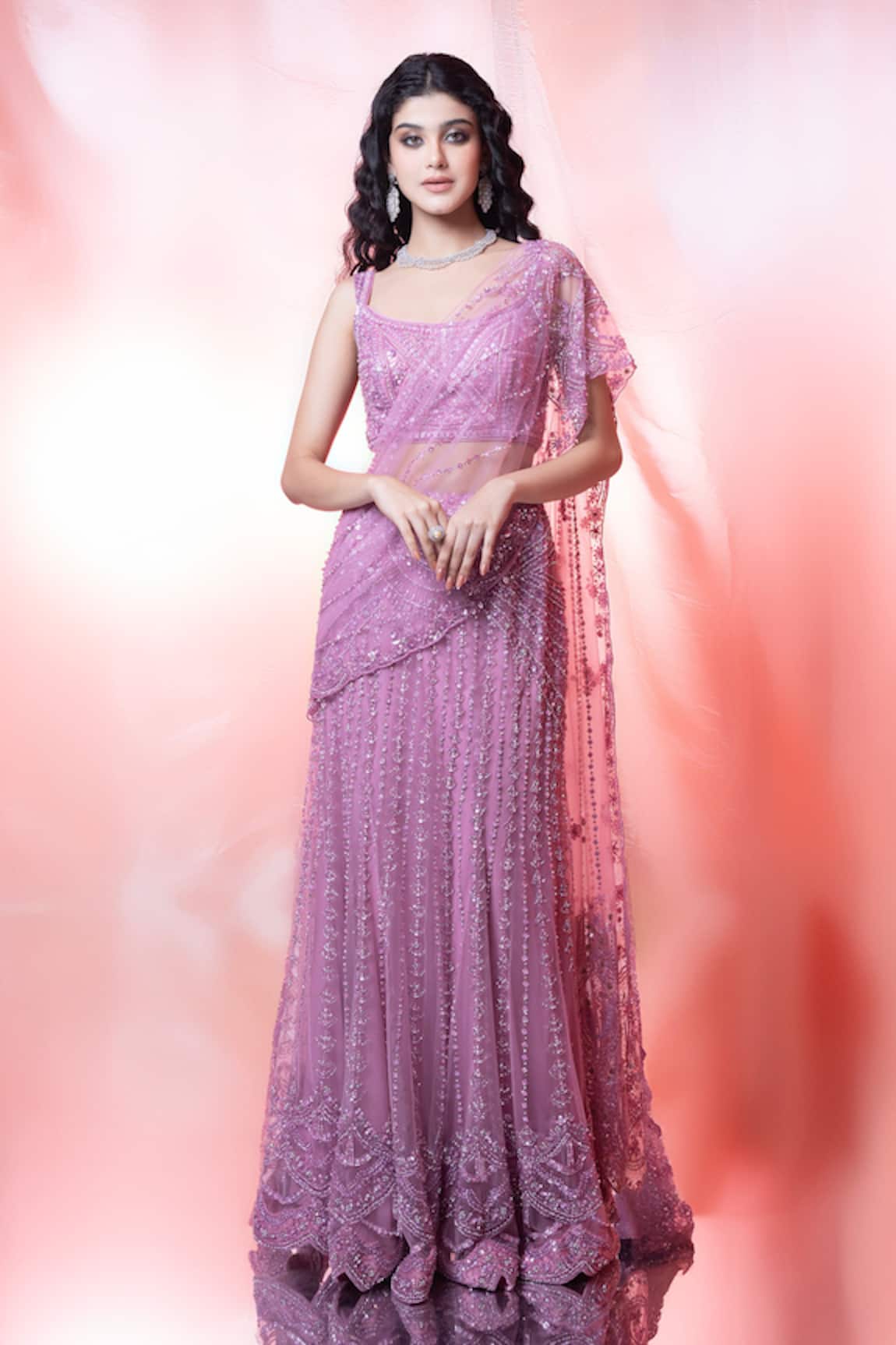 Cutdana Embroidered Sheer Pre-Draped Lehenga Saree With Blouse