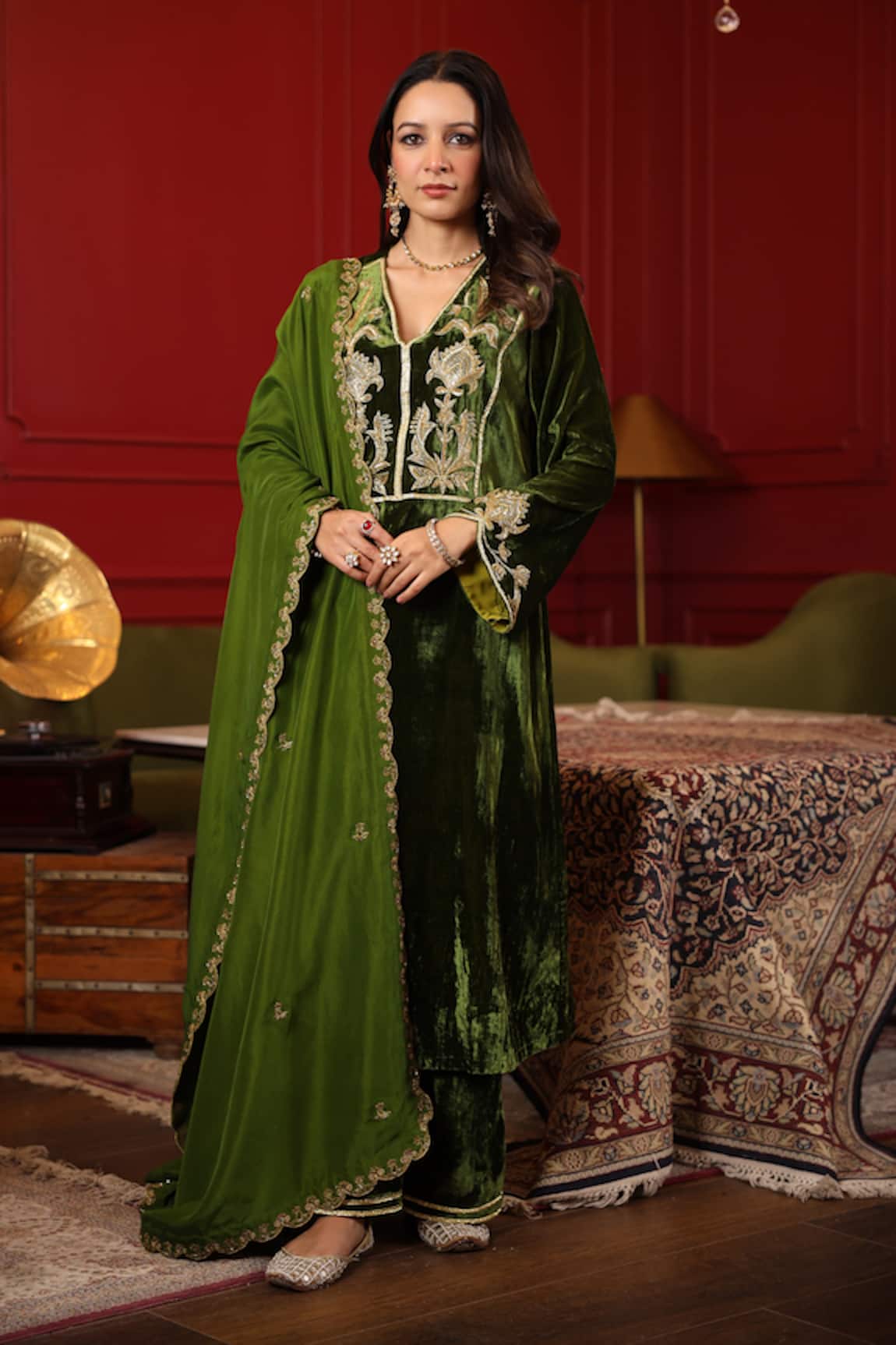 Chevron Pattern Kurta Set With Dupatta