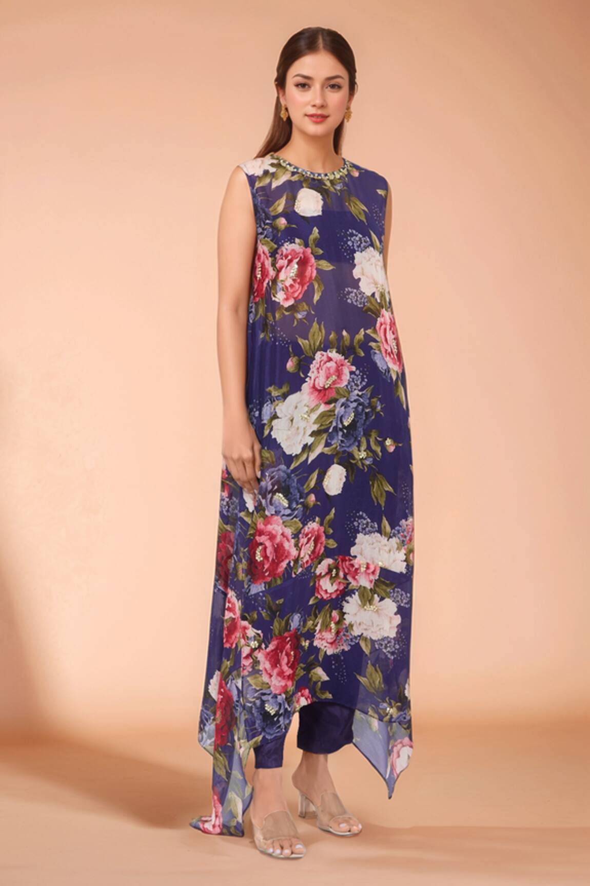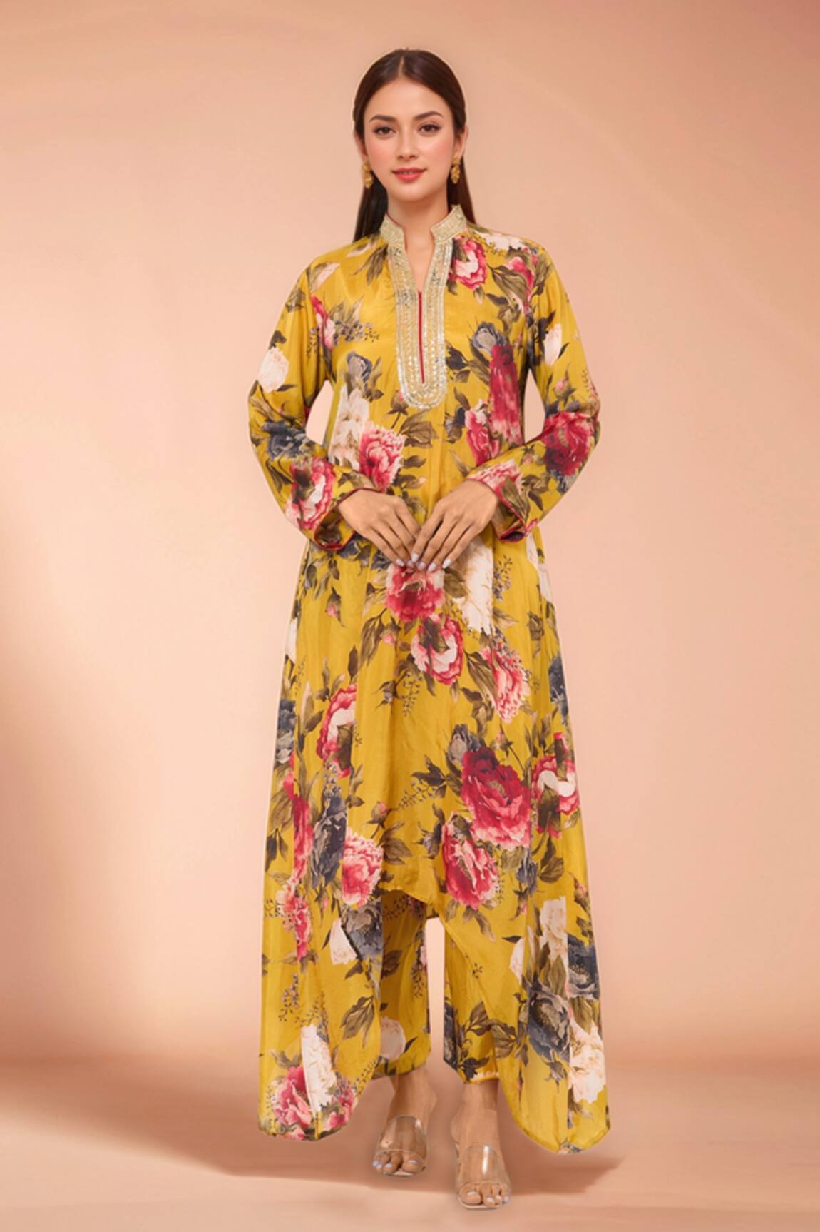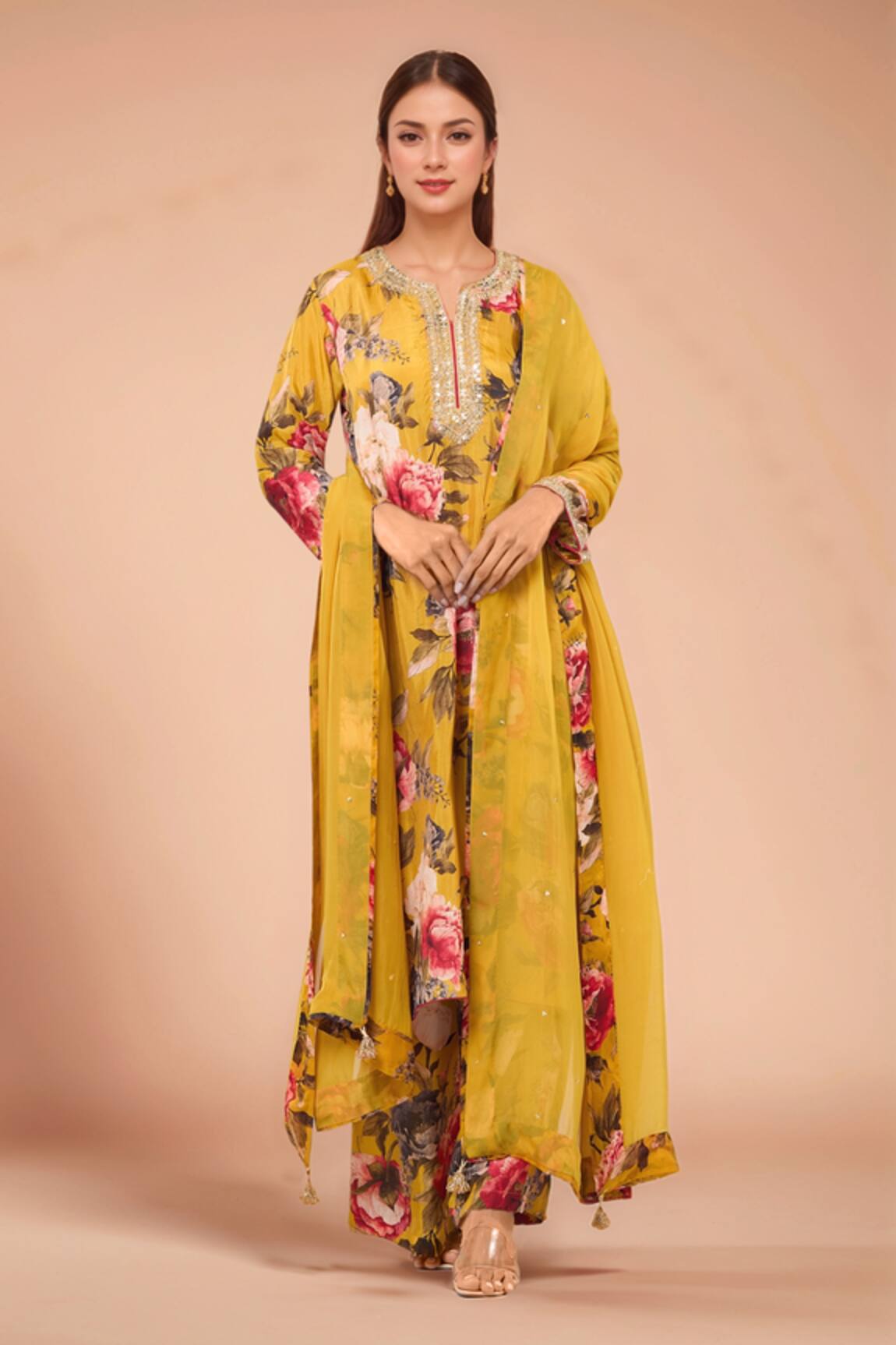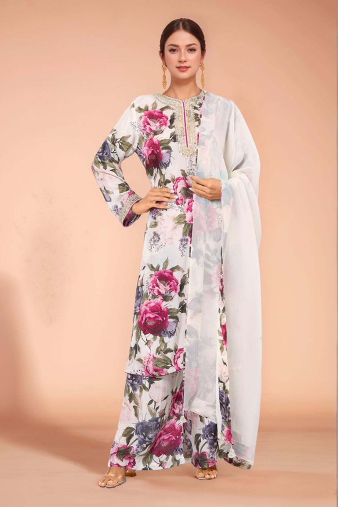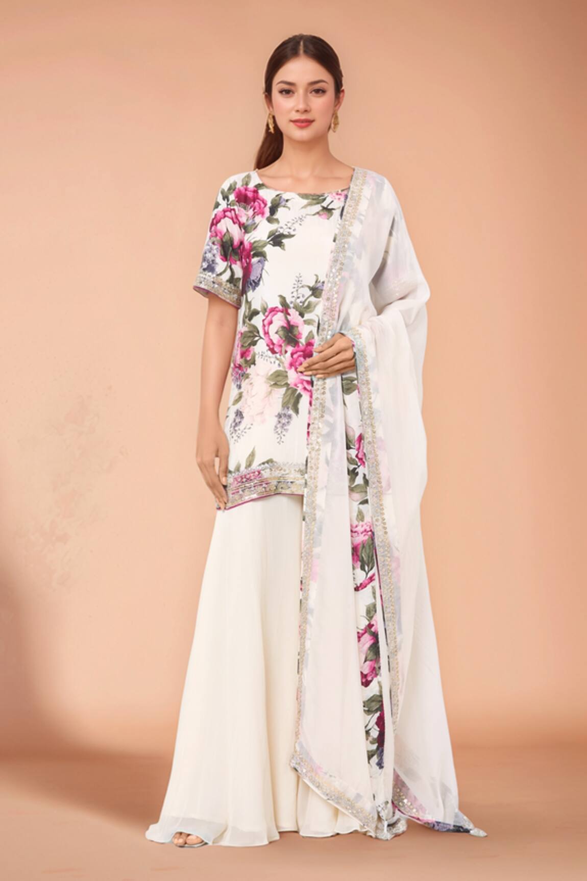 Bead Floral Embroidered Slit Kurta Sharara Set