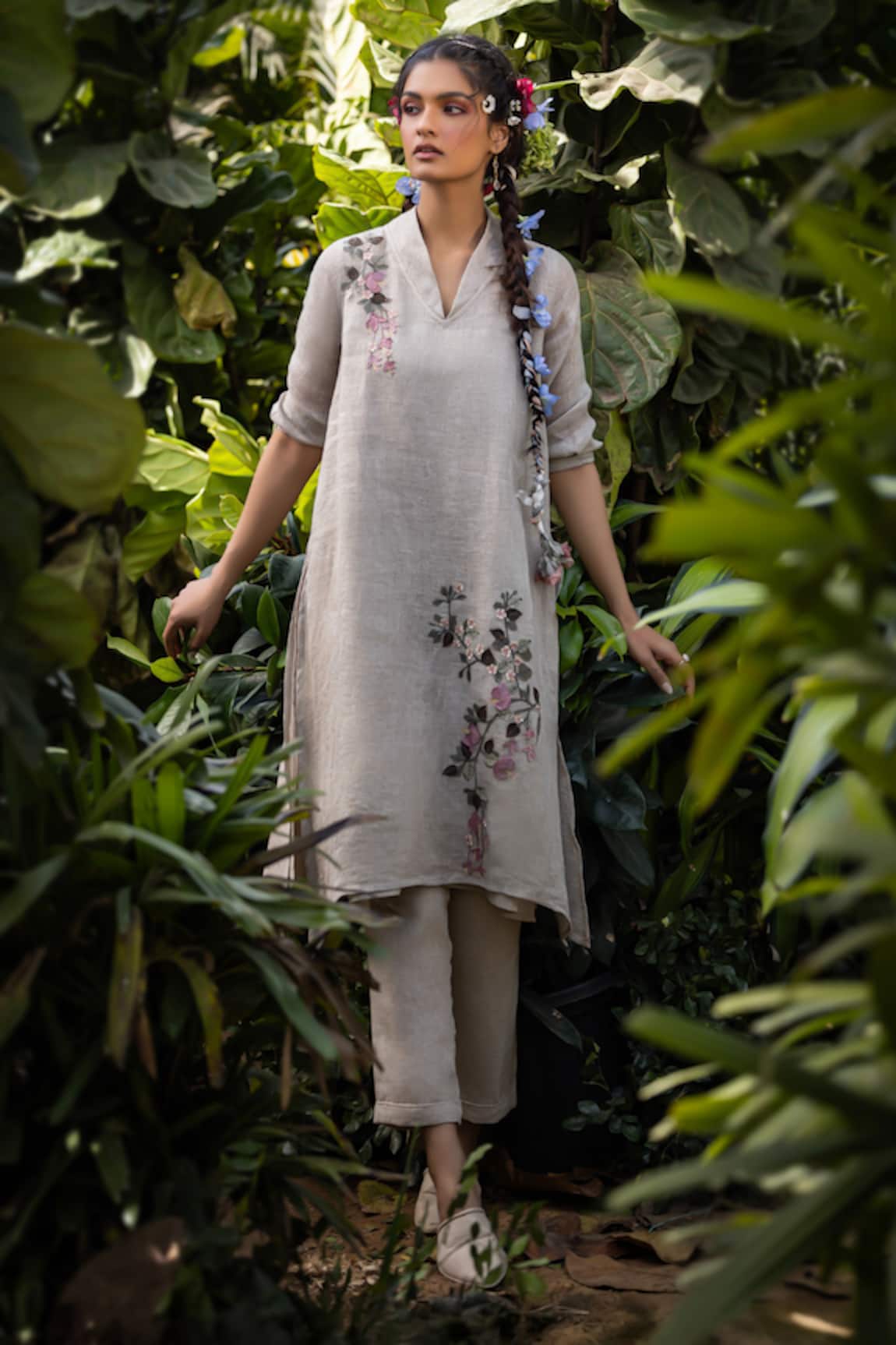 Kaveri Floral Print Linen Pant Set