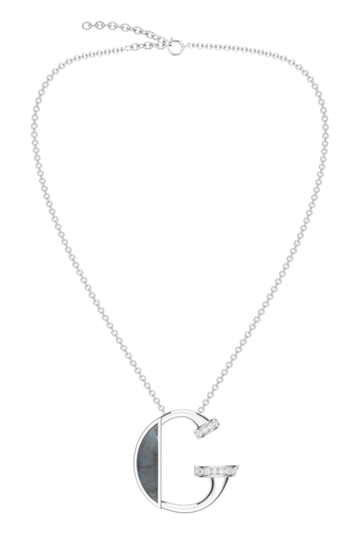 Gold Stone & Pearl Alphabet G Pendant Necklace