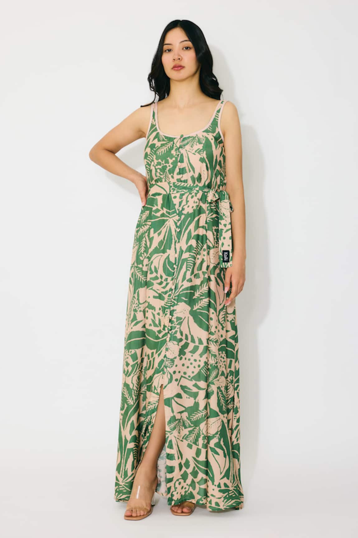 MIDI DRESS WITH MUSTARD & PEACH PATTERN