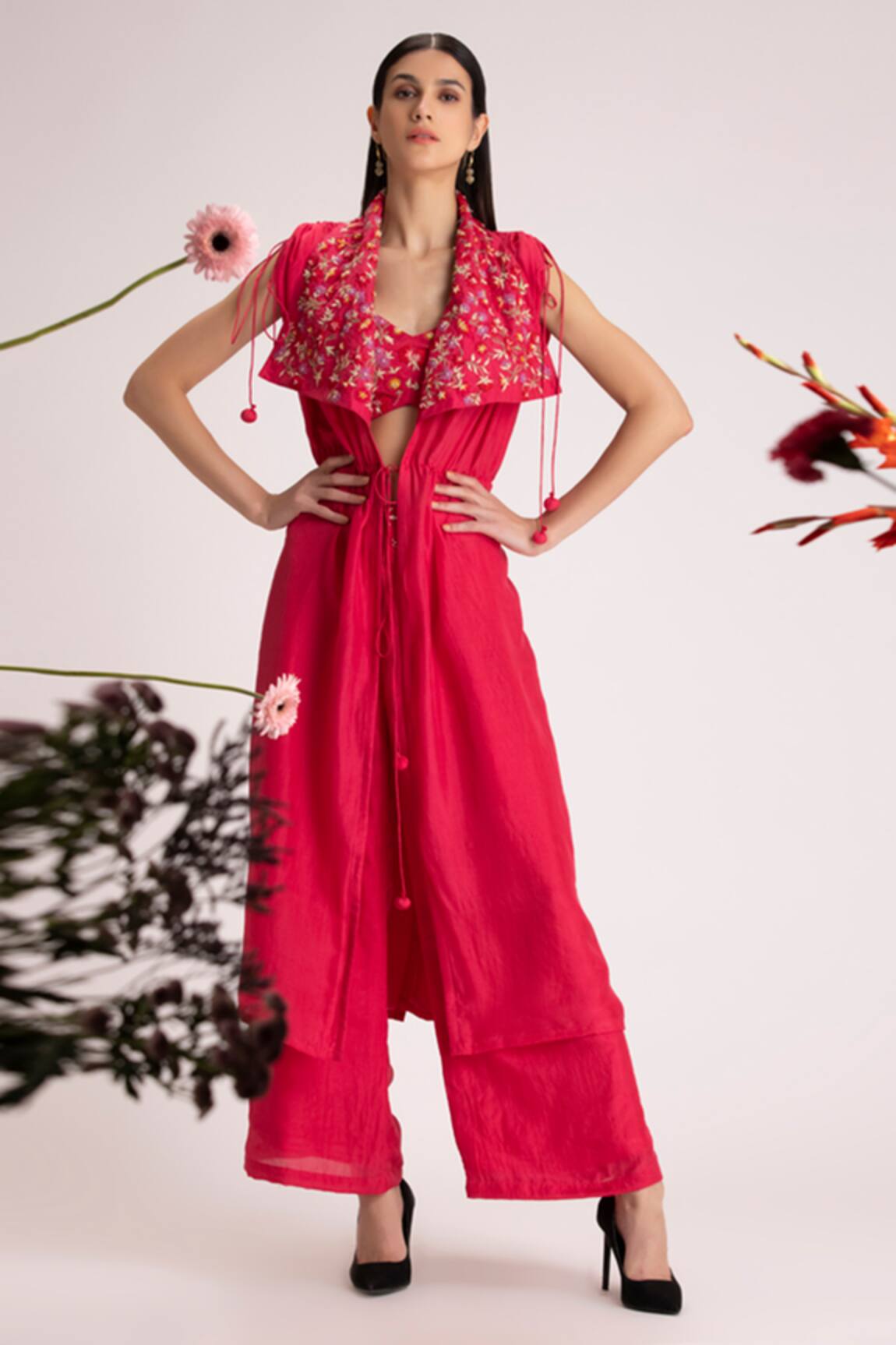Silk Embroidered Jacket Palazzo Set