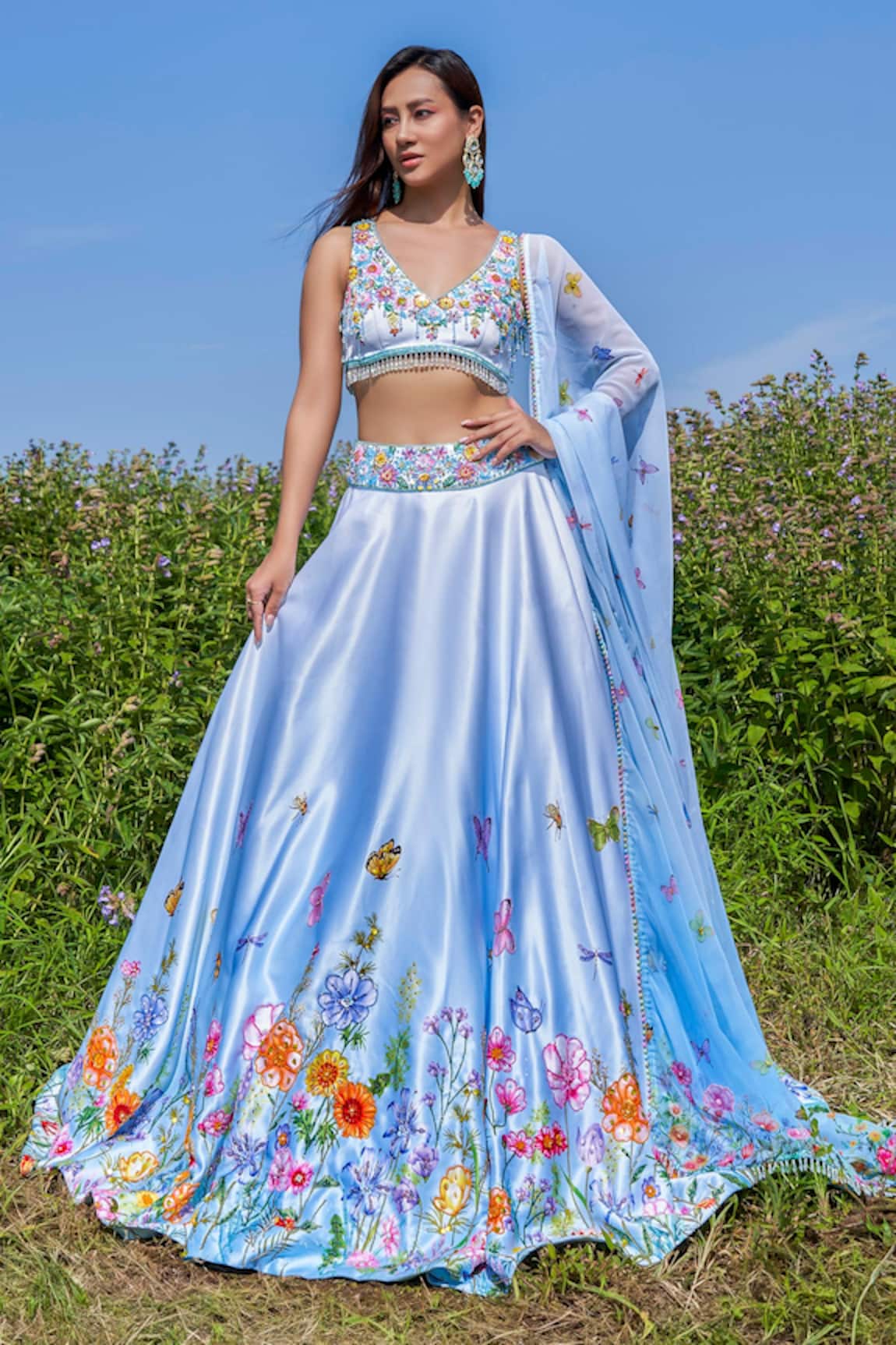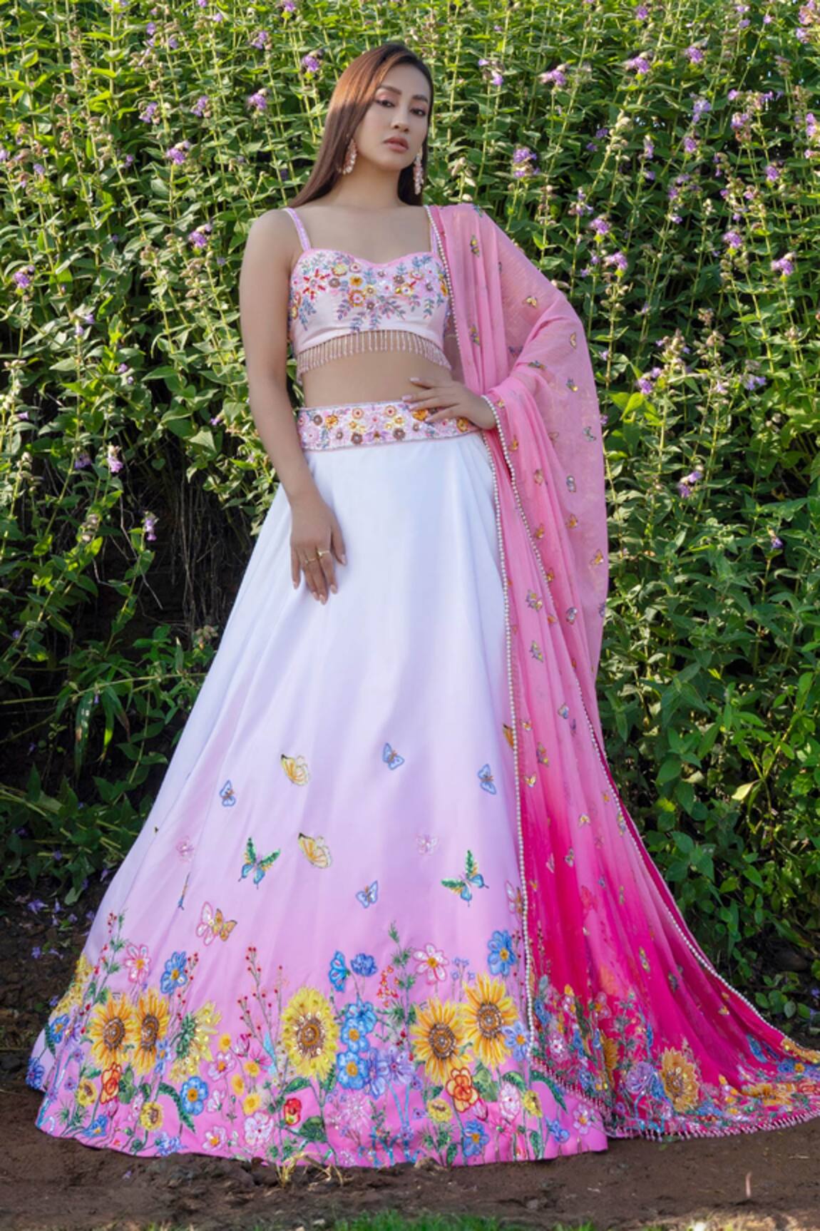 Floral Hand Embroidered Pink Pre-Draped Saree Set