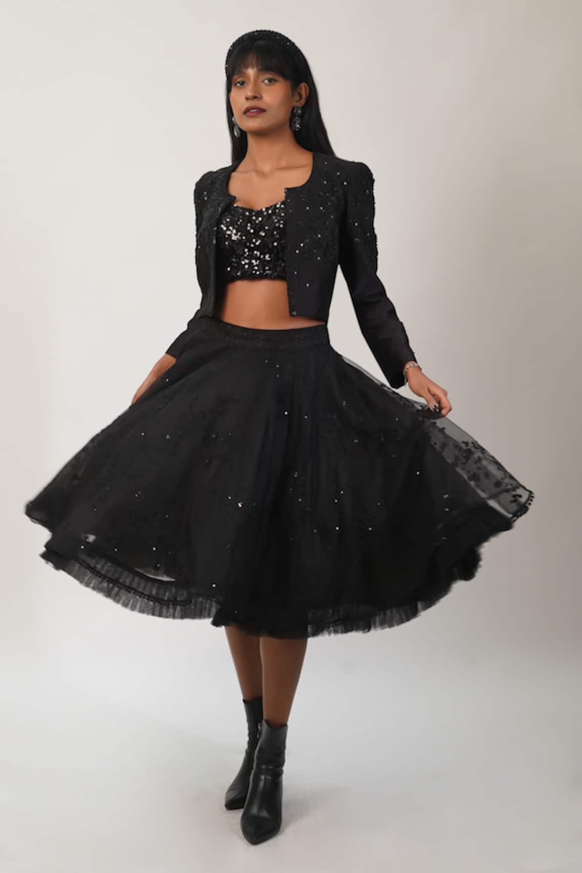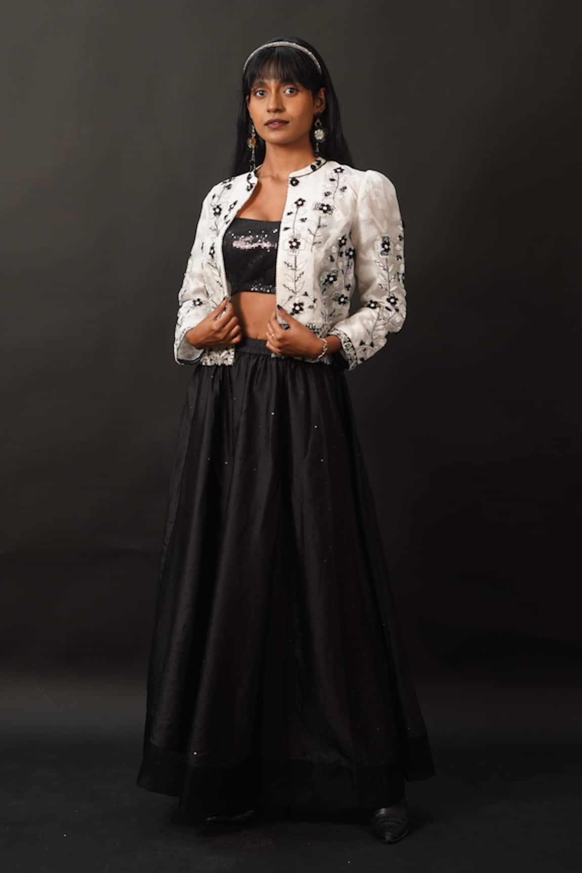 Beads Embroidered Jacket With Skirt Set