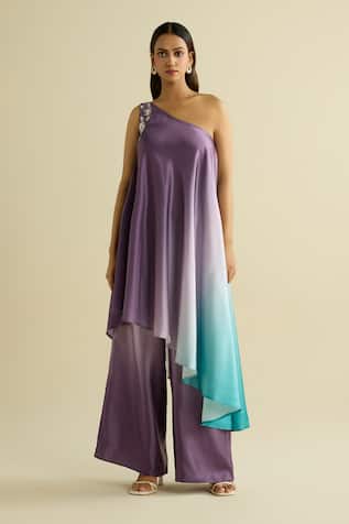 Chanderi Silk Embroidered Yoke Kurta Tulip Pant Set