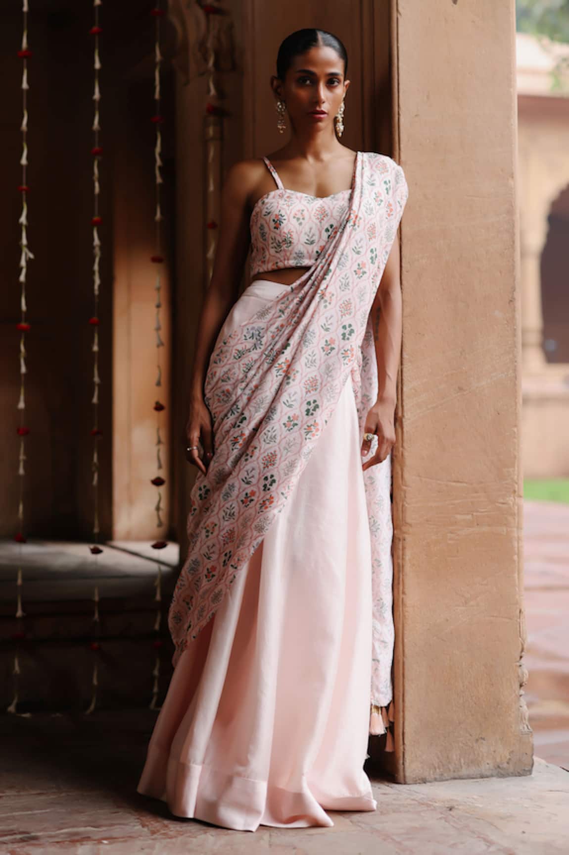 Floral Cutdana Embroidered Pre-Stitched Saree