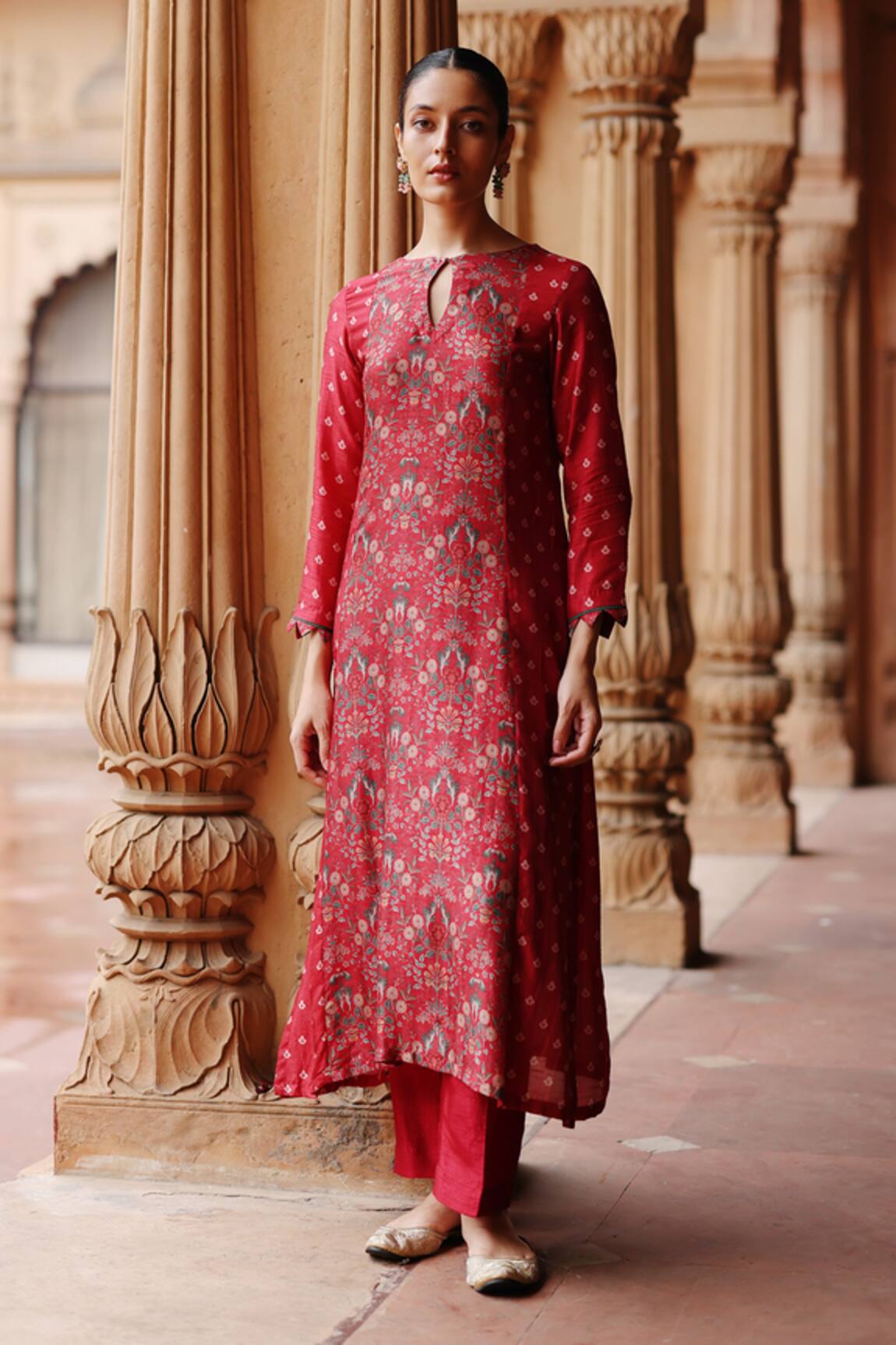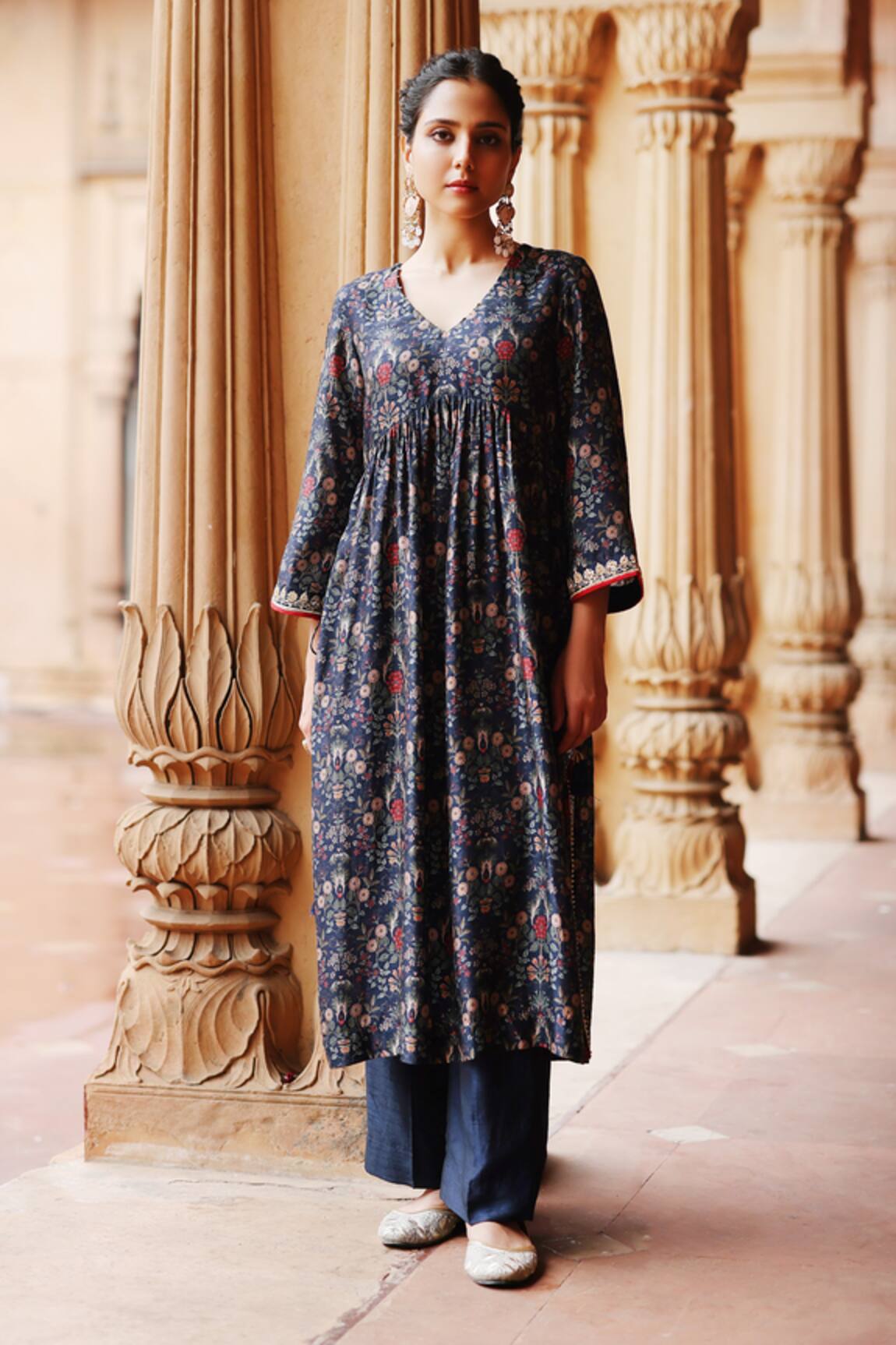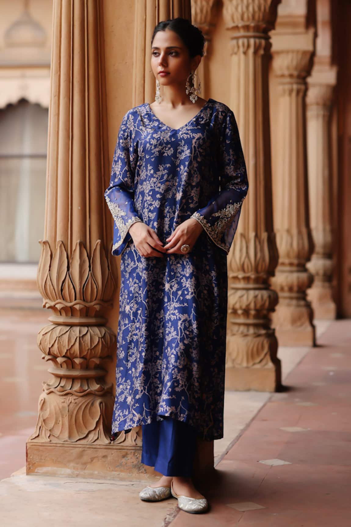 Floral Cutdana & Sequin Embroidered Kurta Pant Set