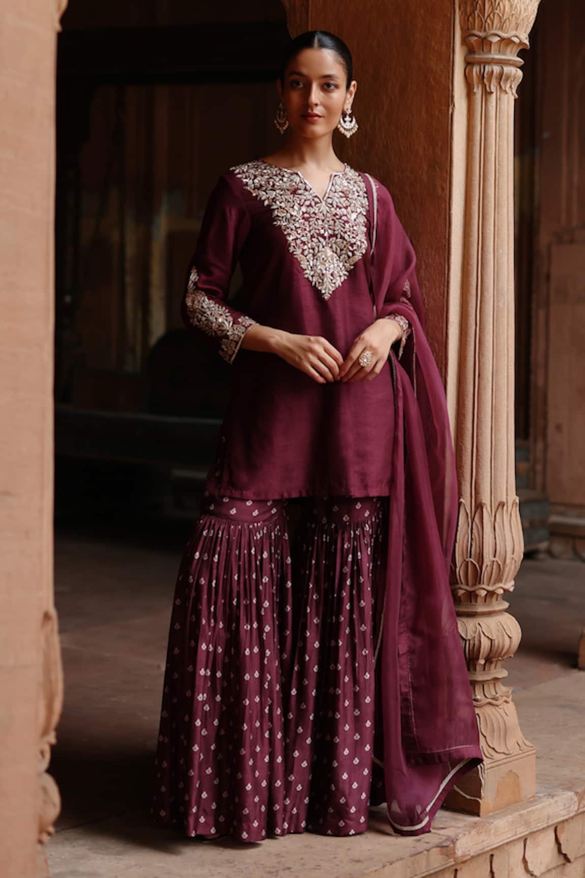 Sequin & Cutdana Embroidered Tunic & Flared Pant Set