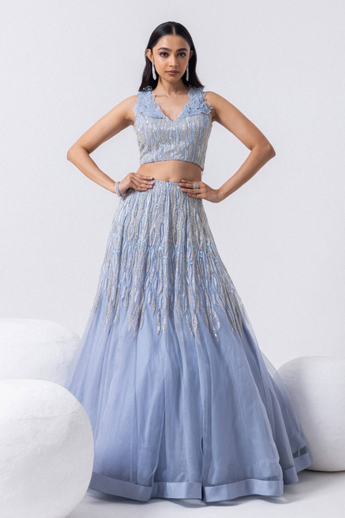 Abstract Embroidered Pre-Draped Saree & Blouse