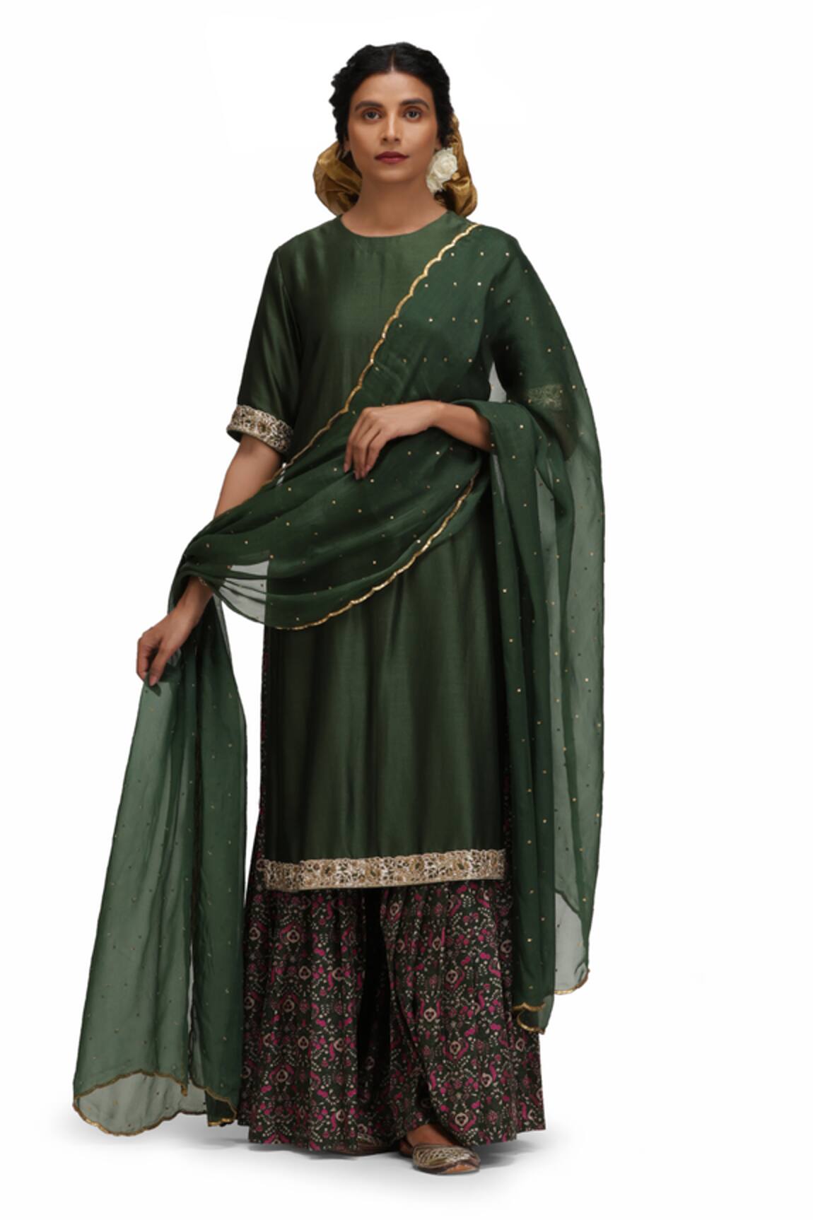 Idika Floral Brocade Pattern Kurta Gharara Set