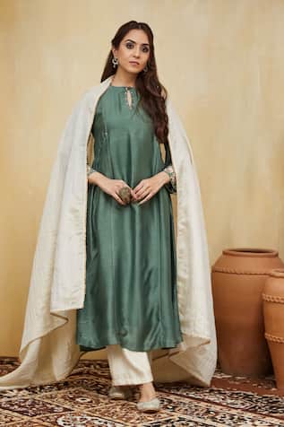 Olive Green Embroidered Chanderi Mehreen Kurta Set