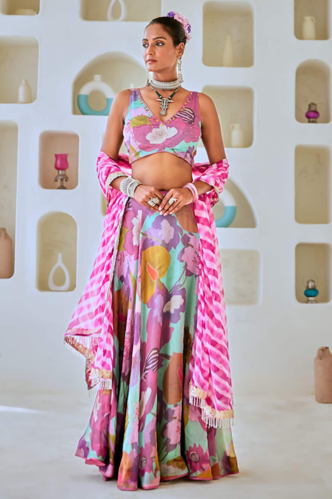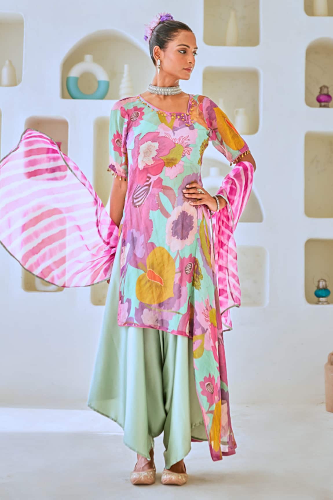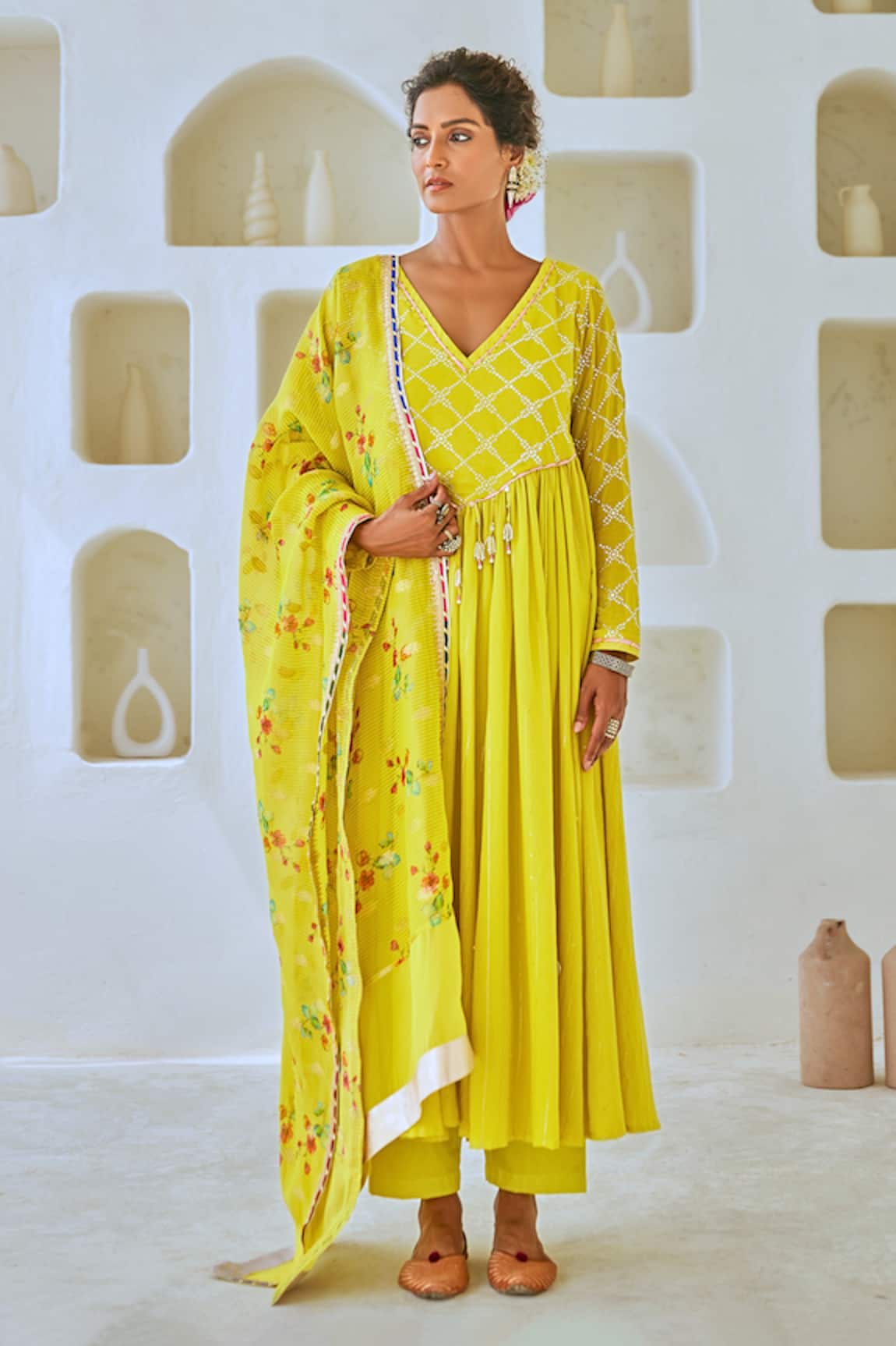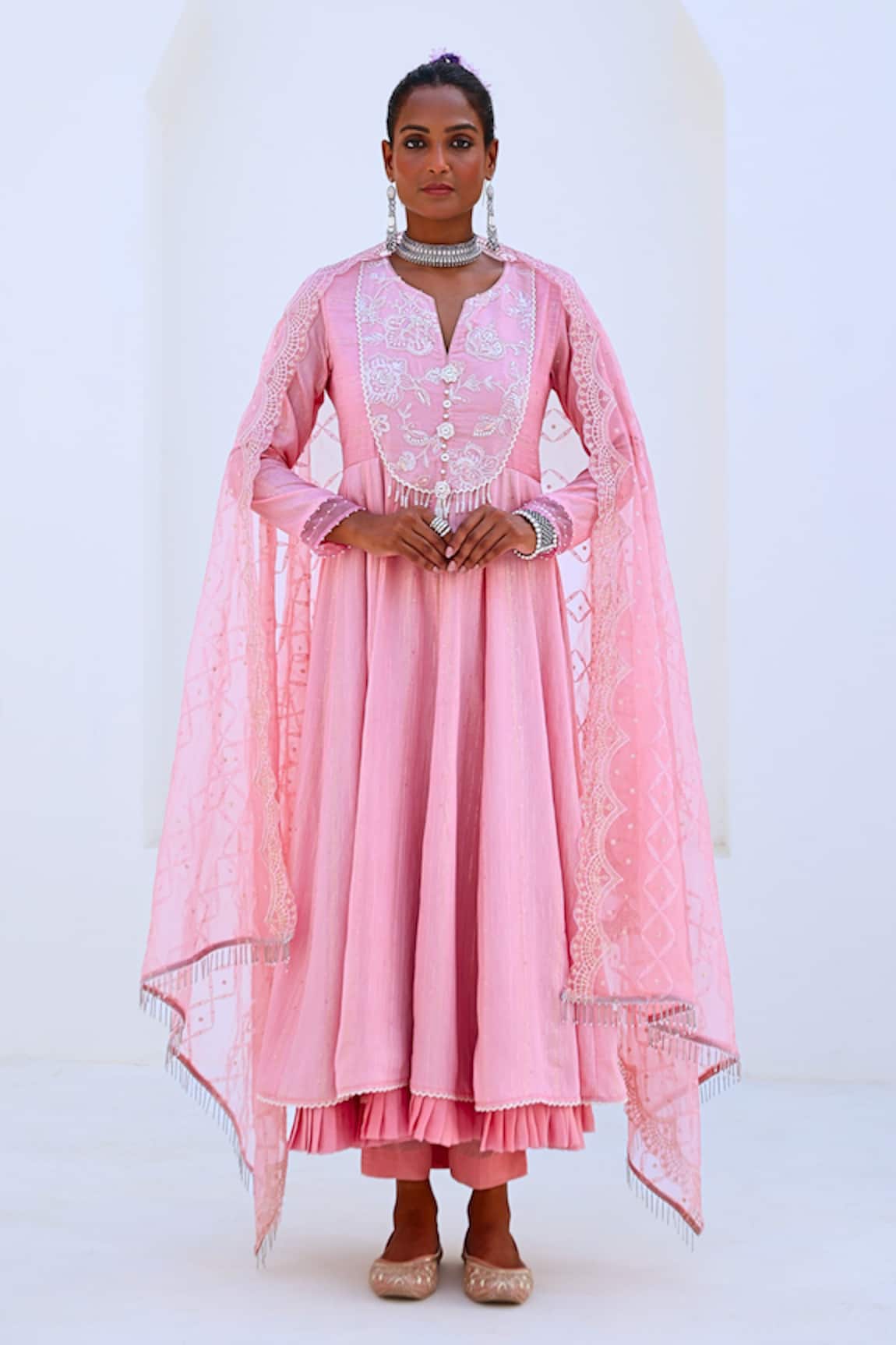 Patterned Angarakha Anarkali Set With Embroidered Dupatta