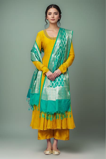 Naintara Bajaj Green Banarasi Art Silk Floral Dupatta