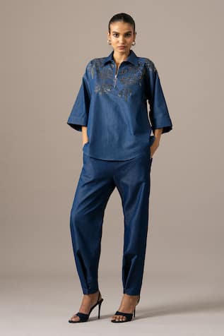 Embellished Pallu Pre-Draped Saree & Blouse Set