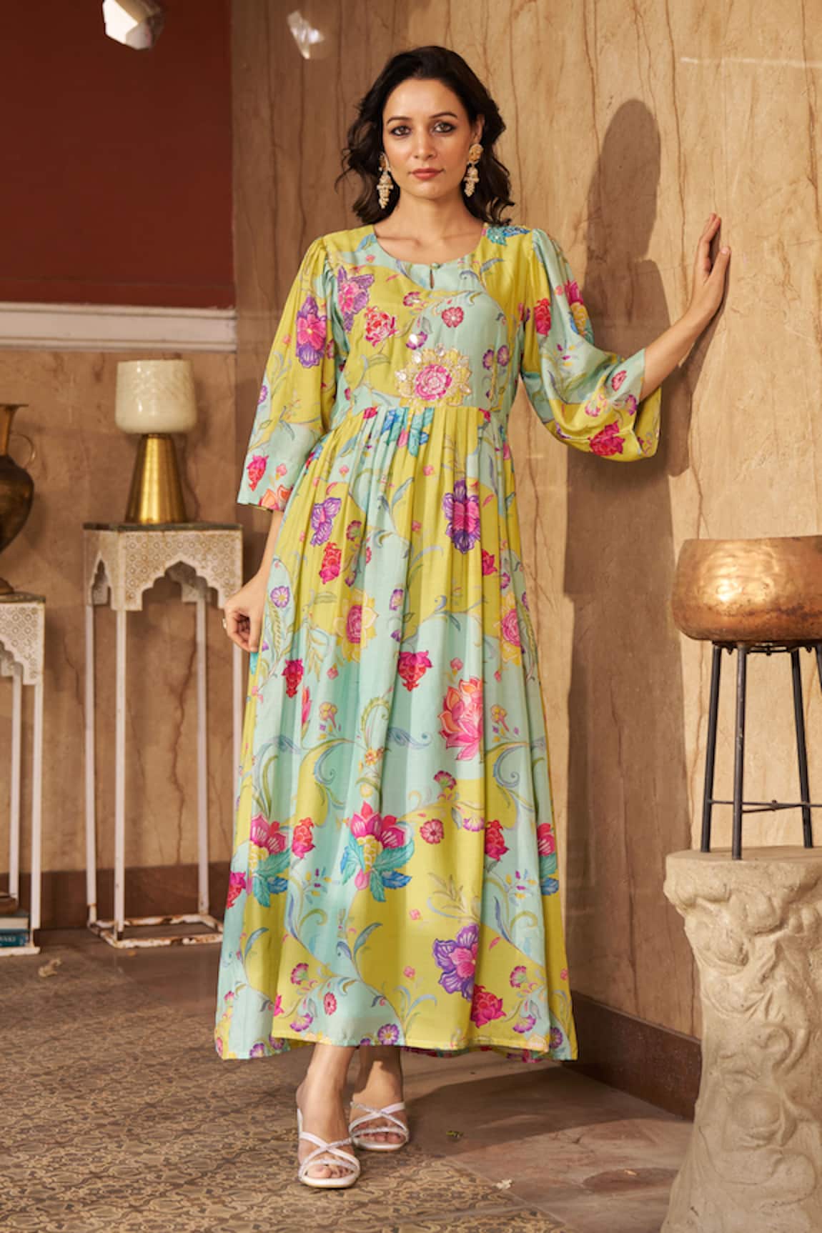 Blue Zardozi Embroidered Kaftan & Pant Set