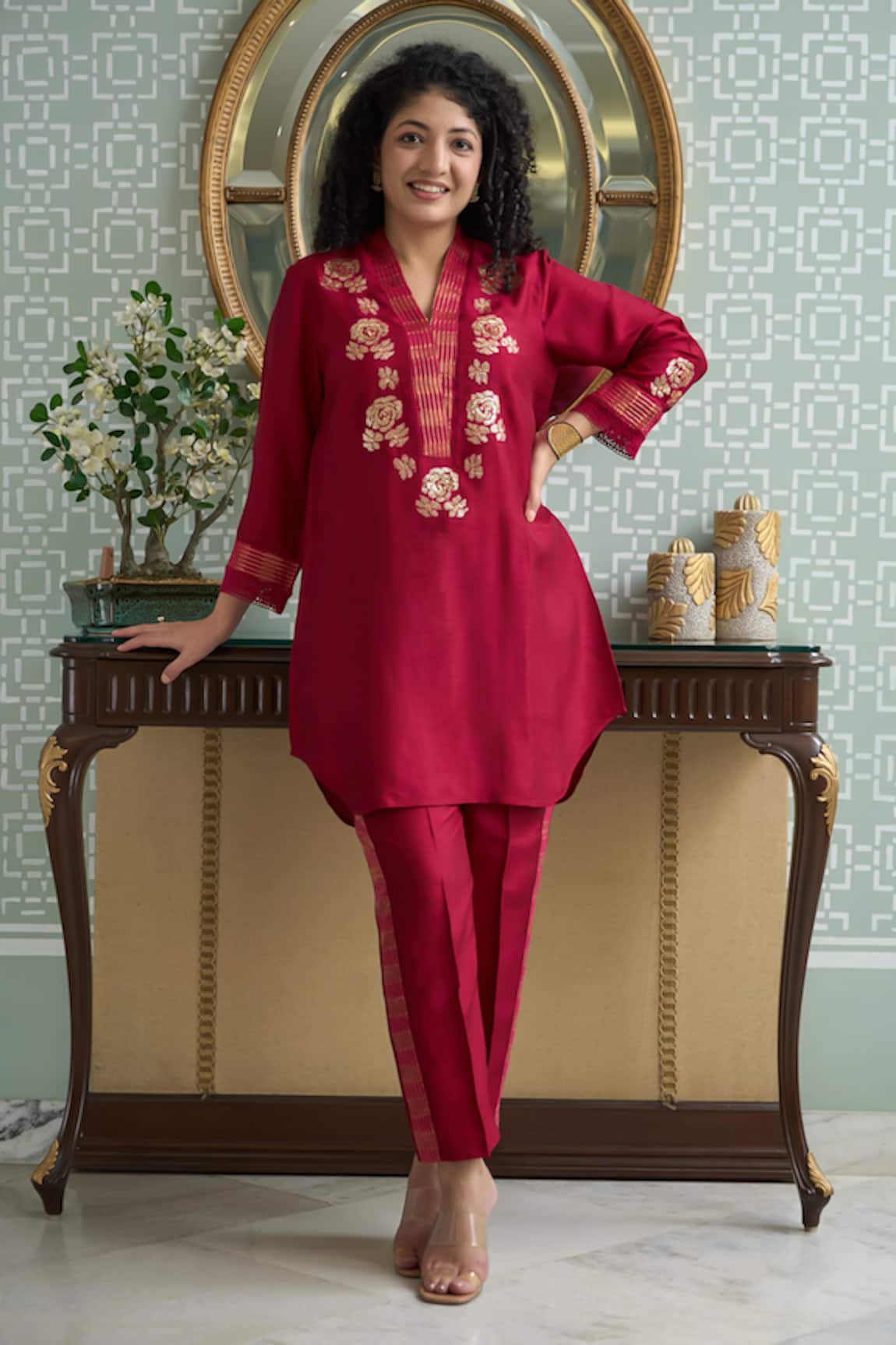 Floral Work Kurta Pant Set