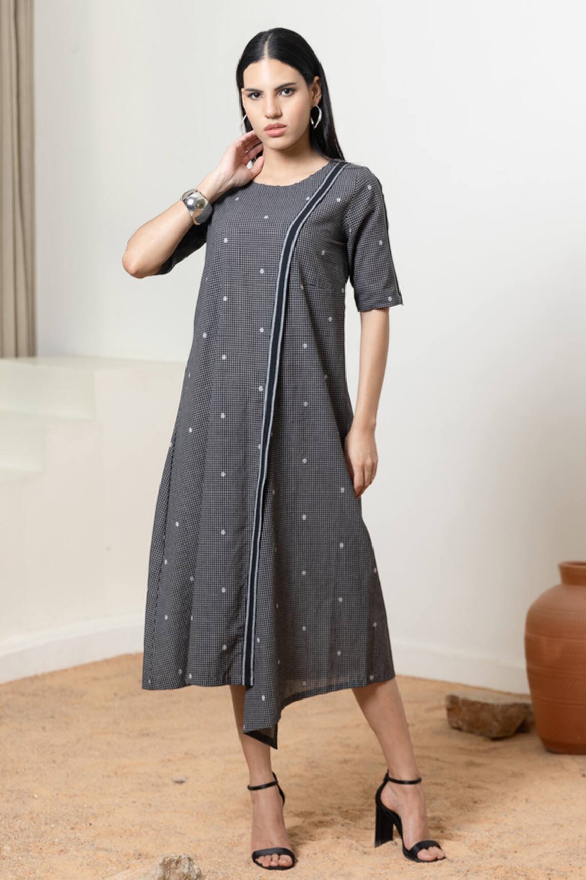 Grey Polka Dot Asymmetric Jacket Kurta Set