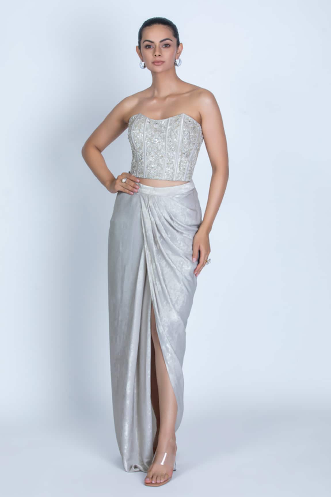 Shimmer Pleated Pre-Draped Saree With Asymmetric Blouse