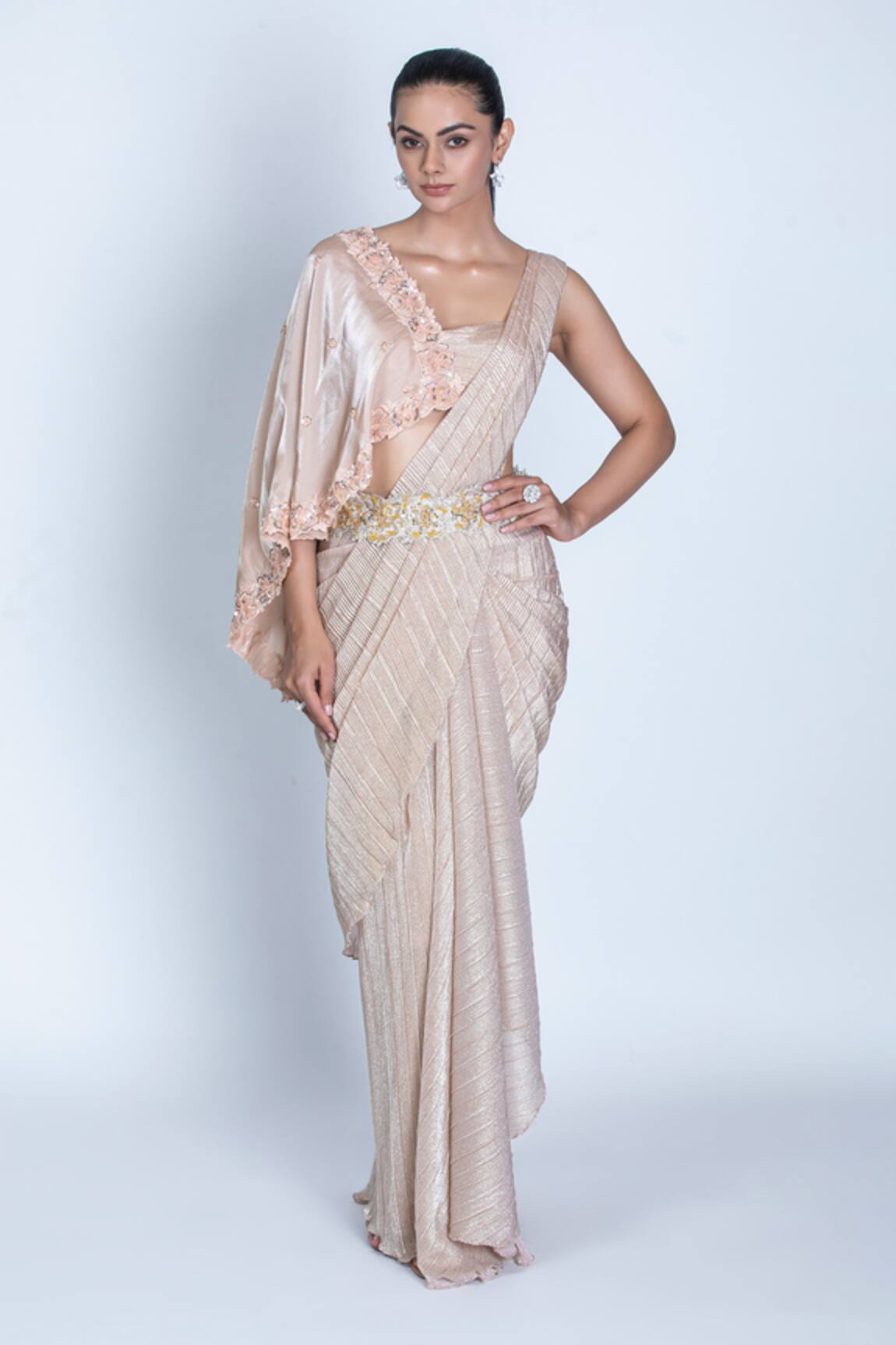 Shimmer Pleat Detailed Pre-Draped Saree Set With Cape