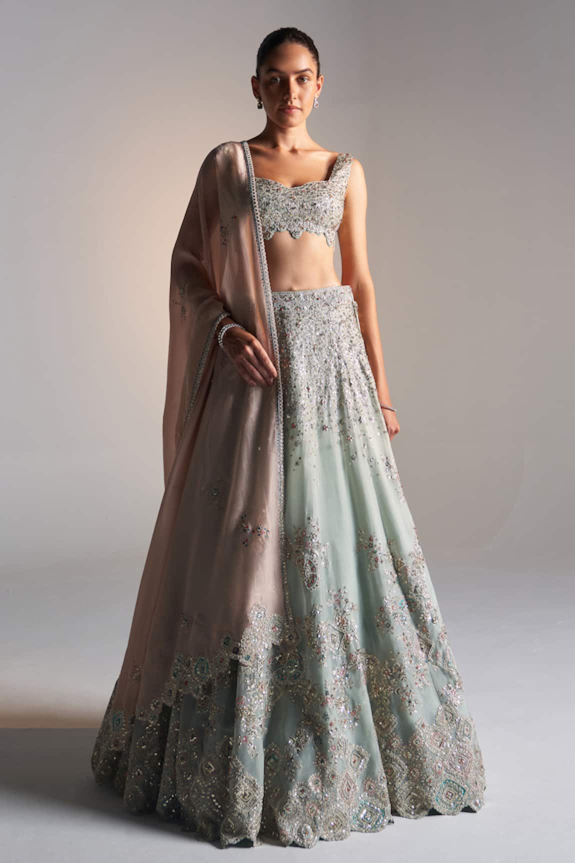 Frost Champagne Tissue Fishcut Lehenga With Blouse
