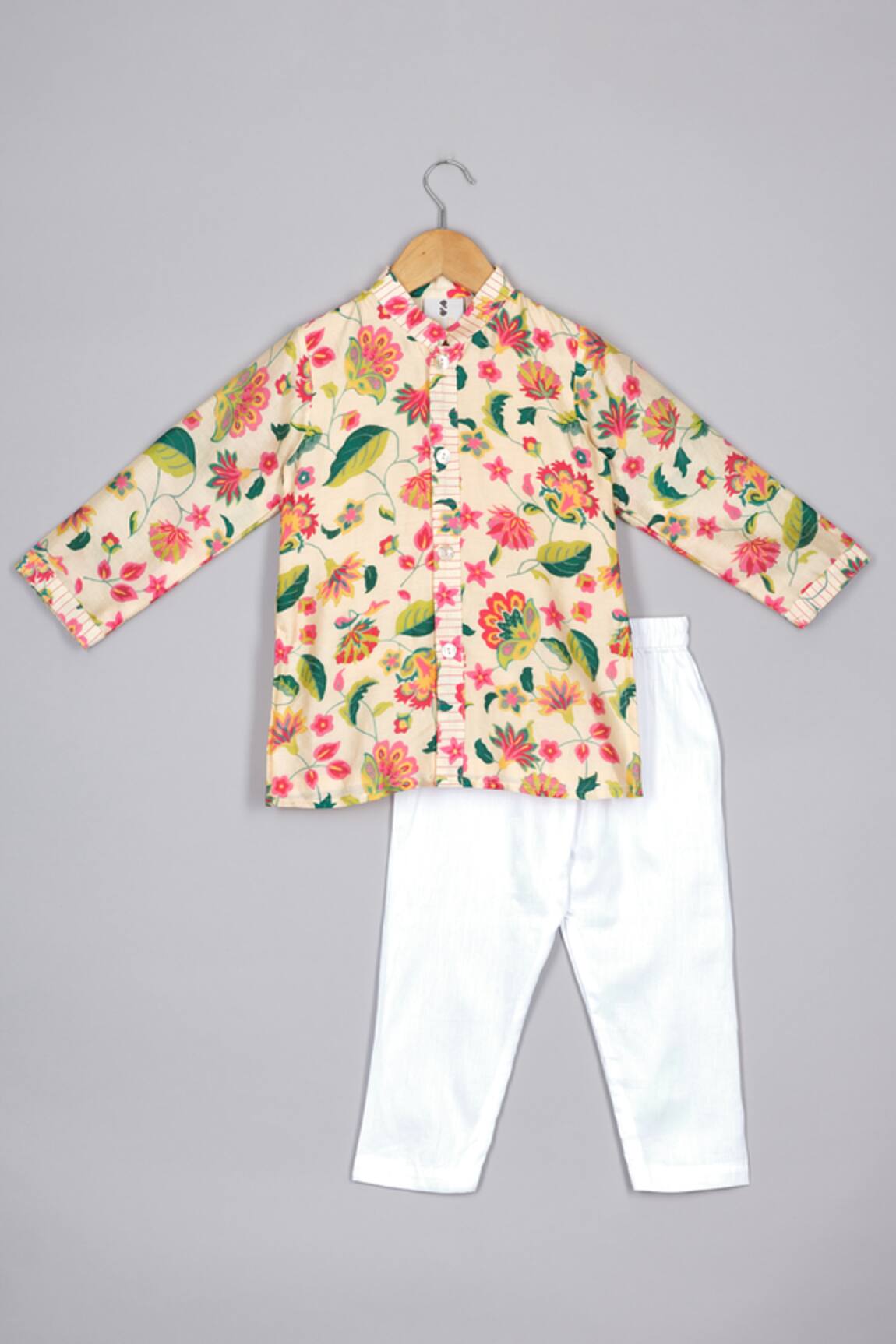 Cream Floral Spring Print Kurta Set